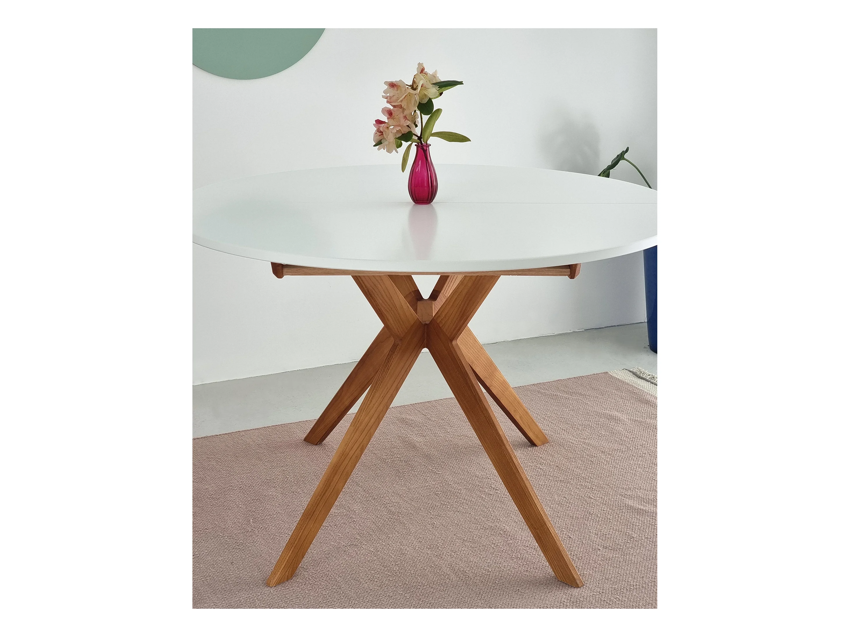 Mesa de jantar redonda extensível 120cm Biju Preto com pernas de carvalho