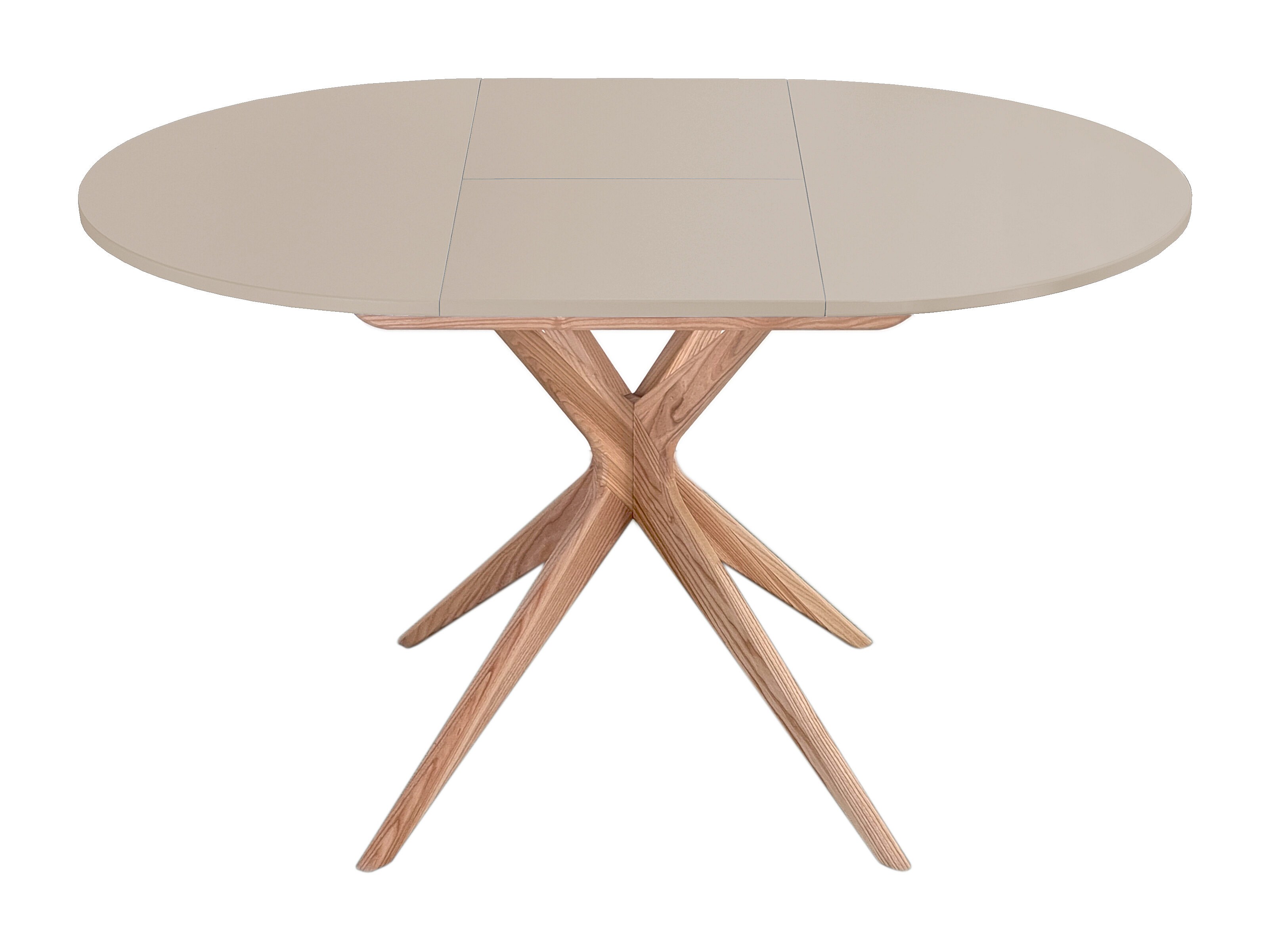 Mesa de jantar redonda extensível 90cm Jubi Castanho Bege | Pé em freixo tingido de carvalho