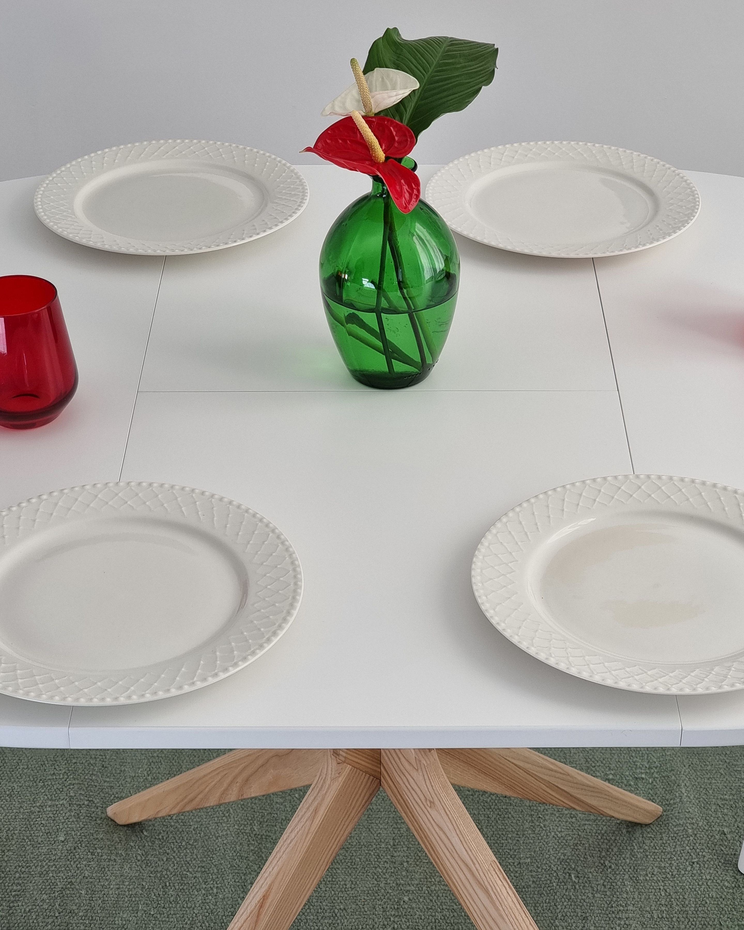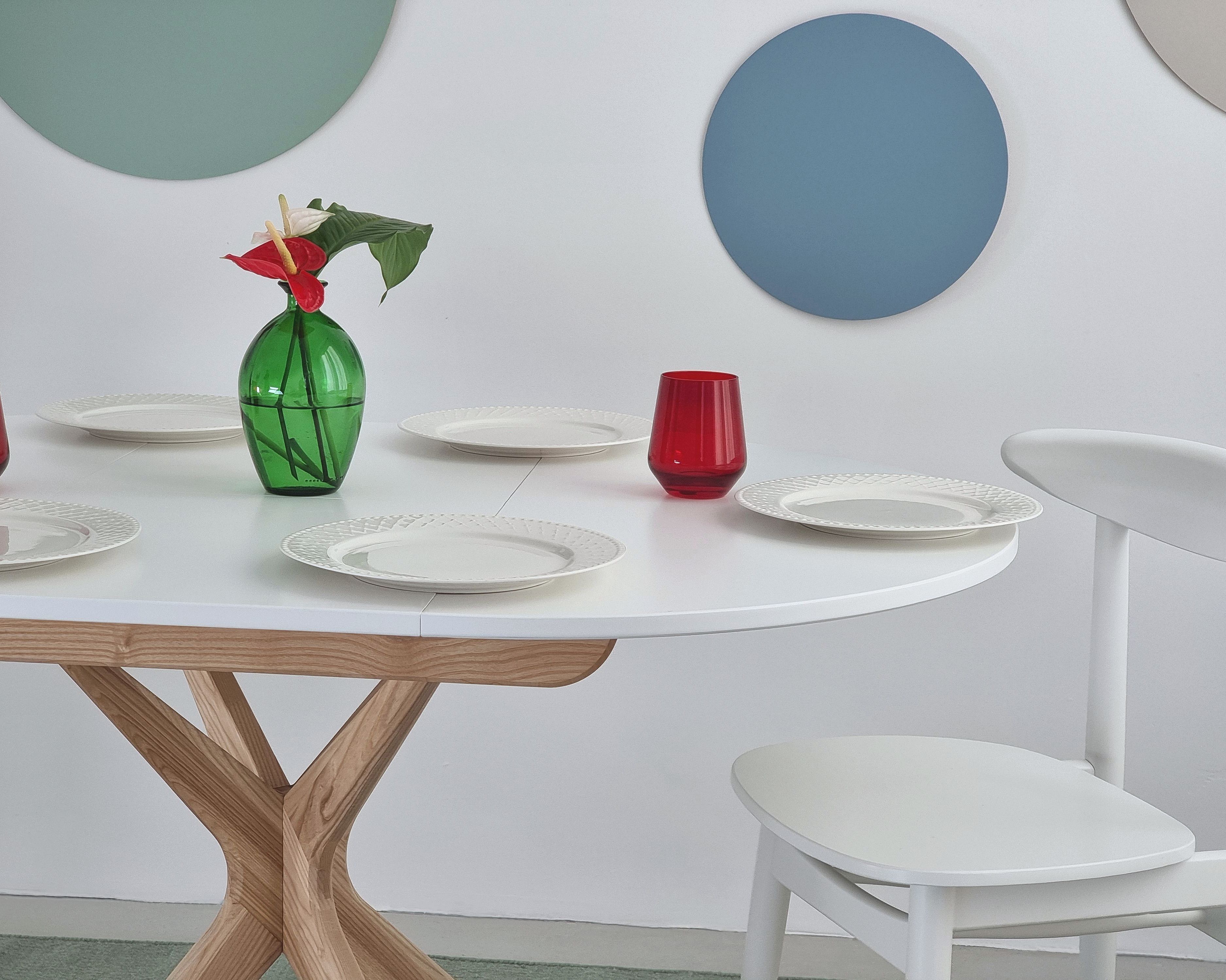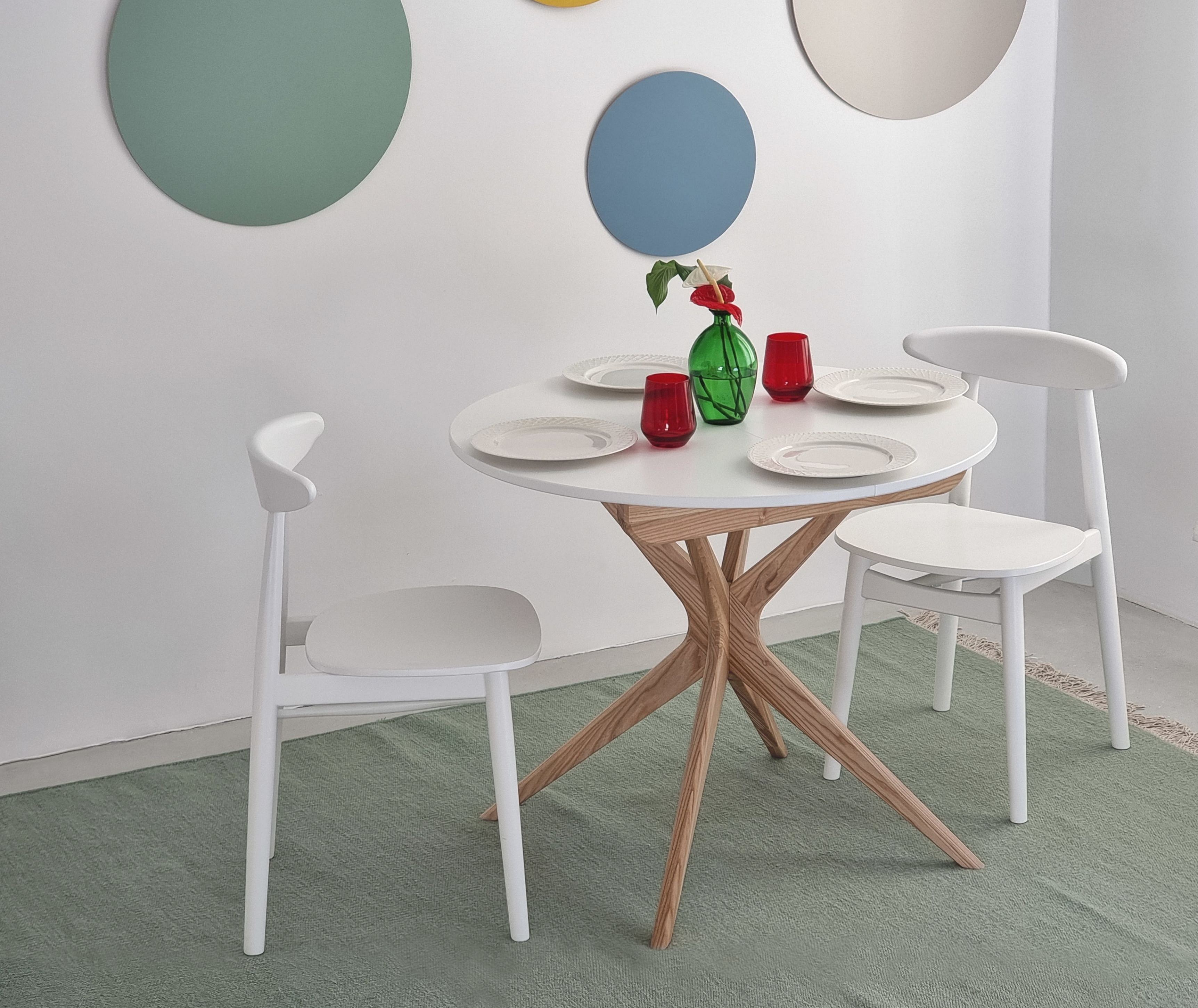 Mesa de jantar redonda extensível 90cm Jubi Branco Giz | Pé em freixo