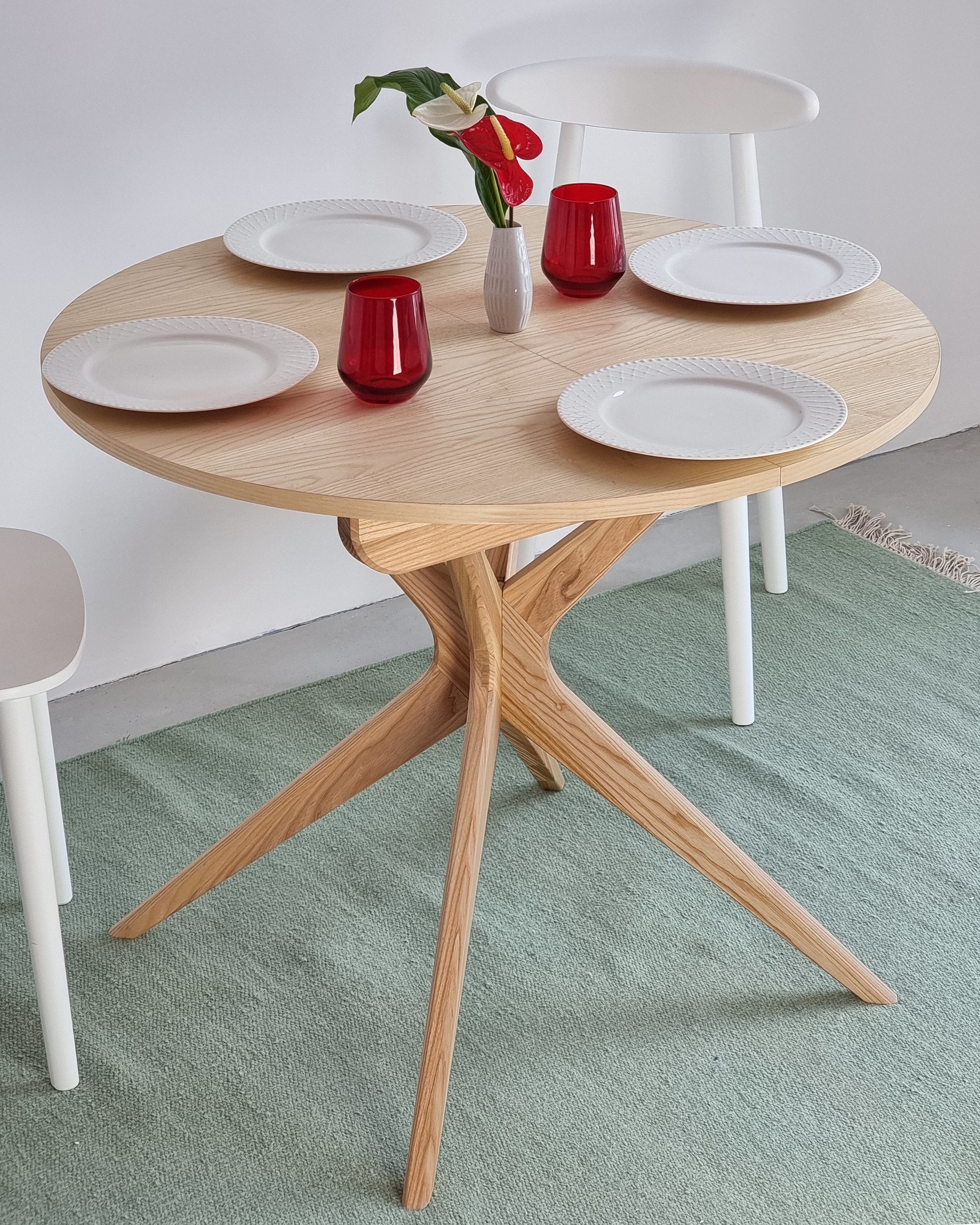 Mesa de jantar redonda extensível 90cm Jubi Freixo