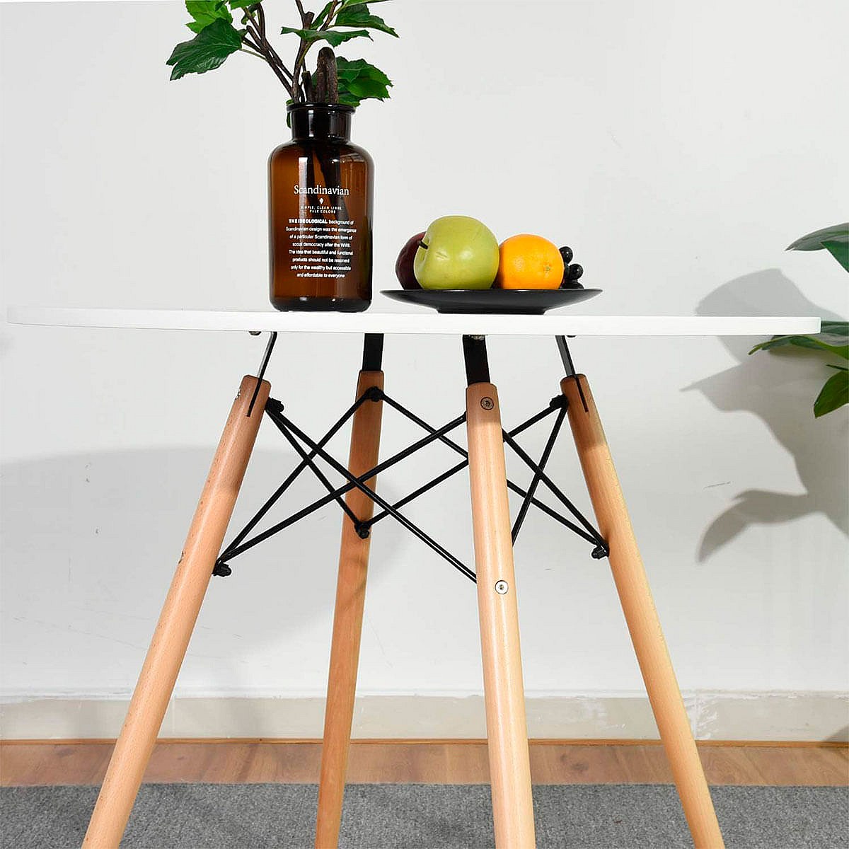Mesa de Jantar Redonda Tower Branca e Faia 80x75 cm