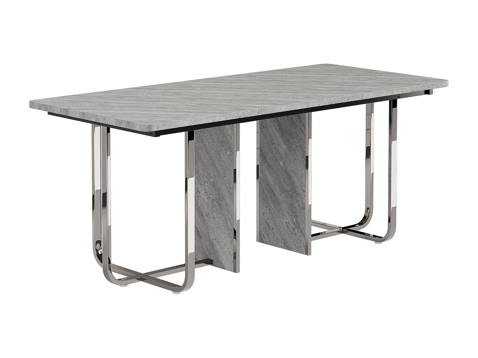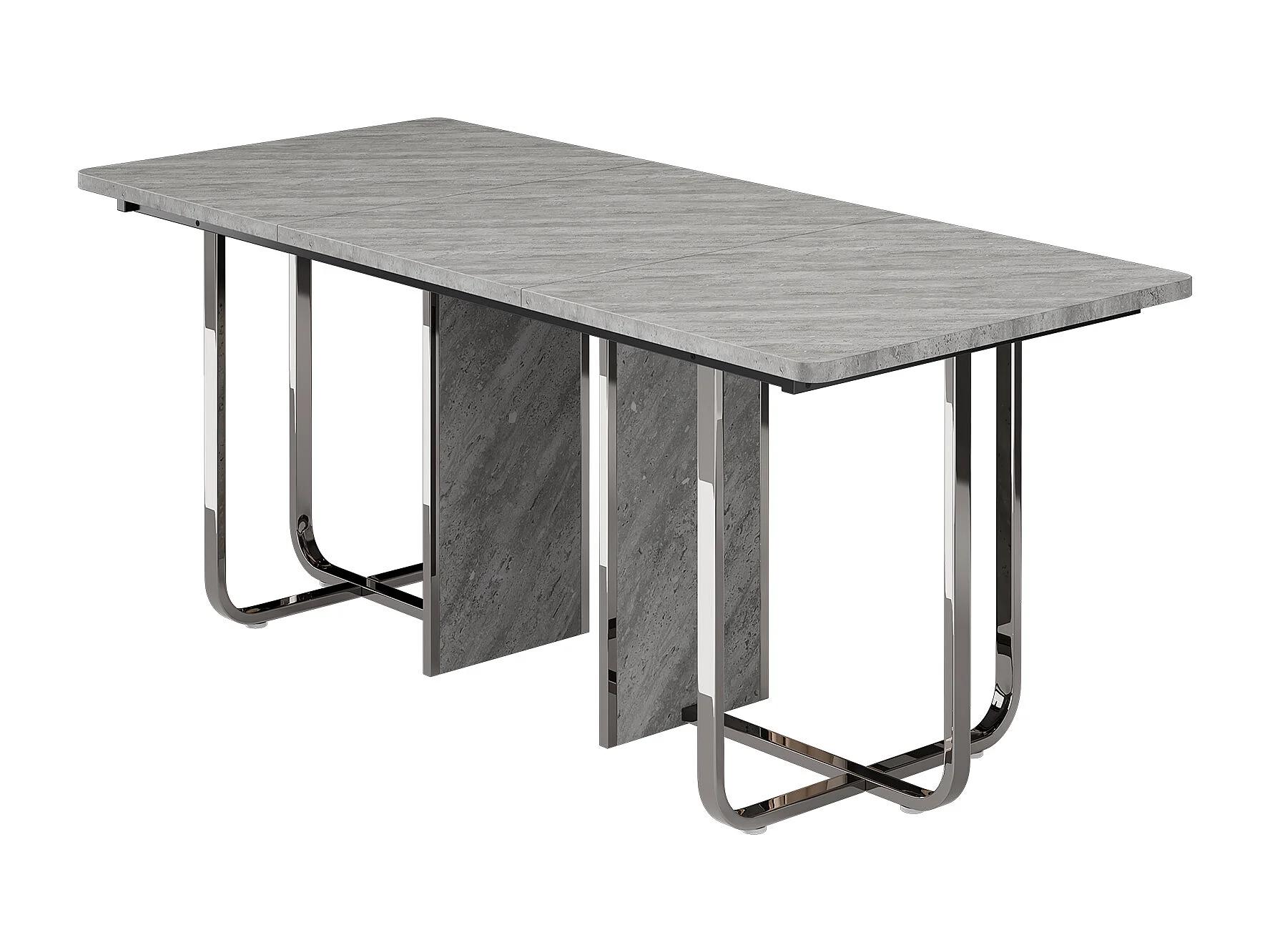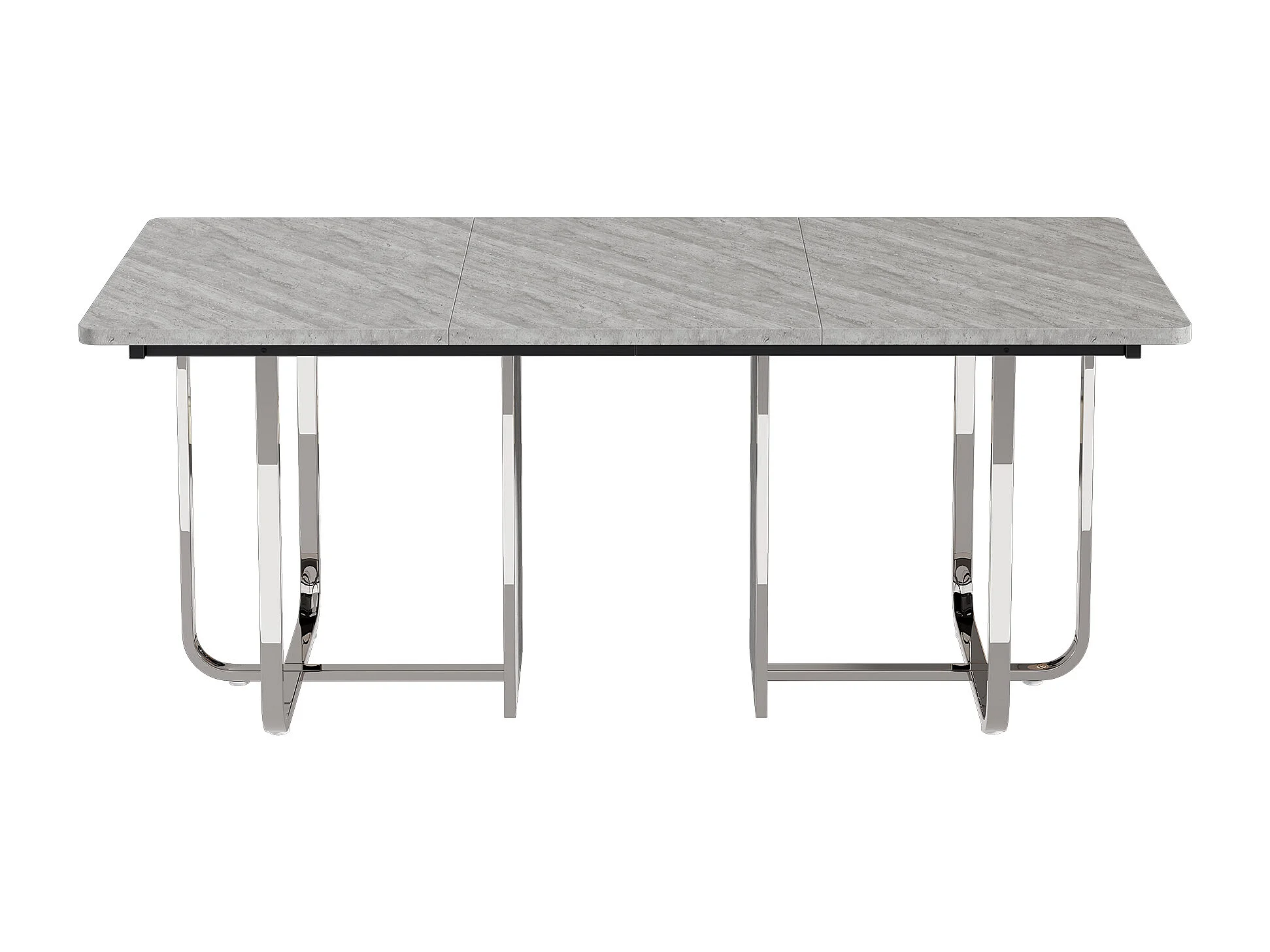 Mesa de jantar retangular para 6 pessoas, tampo em MDF cinza com pés em metal prateado - 180x80x75cm