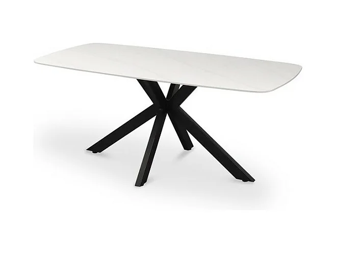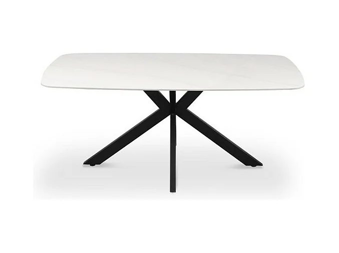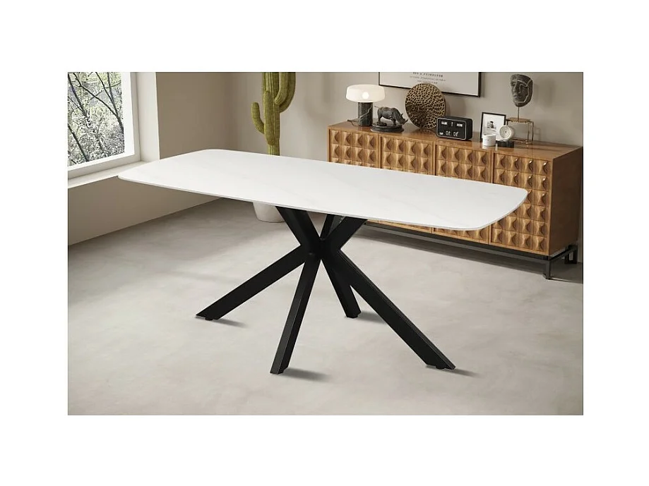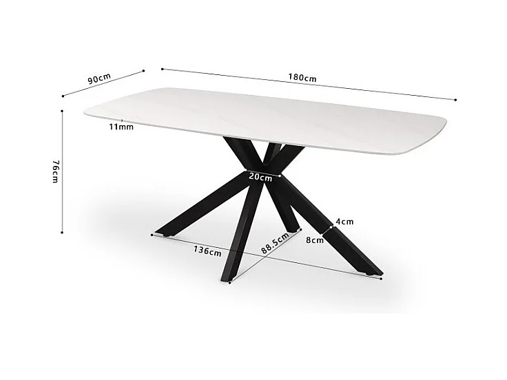 Mesa de jantar VINCI comprimento 180cm com tampo de 10mm em pedra com efeito de mármore branco.