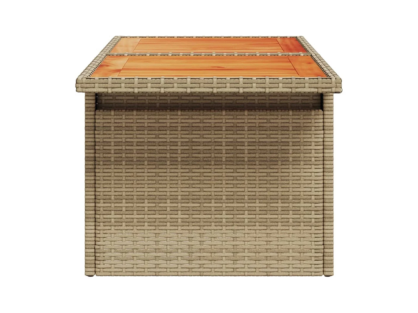 Mesa de jardim com tampo em acácia 105x75x72 cm vime PE bege