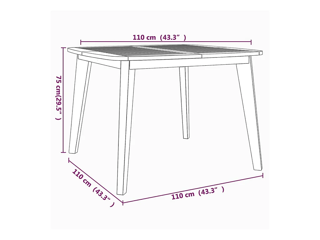 Mesa de jantar p/ jardim 110x110x75 cm madeira de acácia maciça