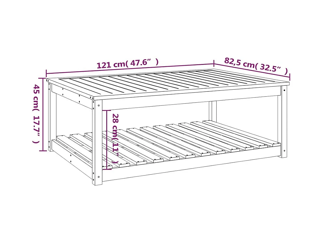 Mesa de jardim 121x82,5x45 cm madeira de pinho maciça