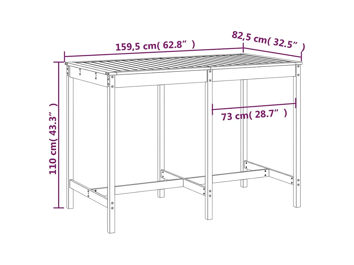 Mesa de jardim 159,5x82,5x110 cm madeira de pinho maciça