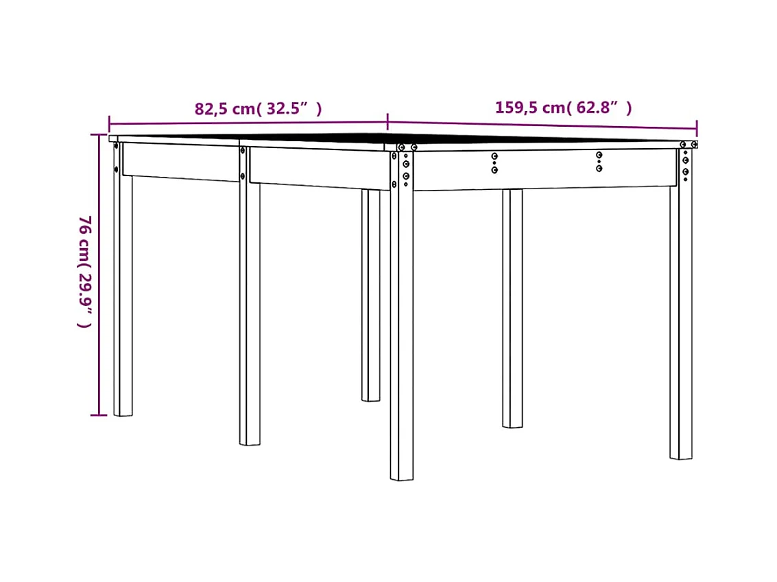Mesa de jardim 159,5x82,5x76 cm madeira de pinho maciça branco