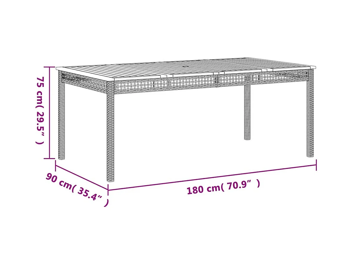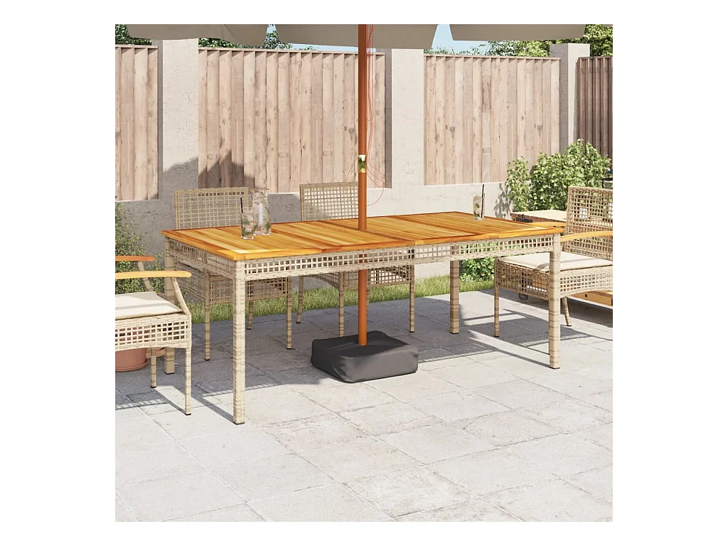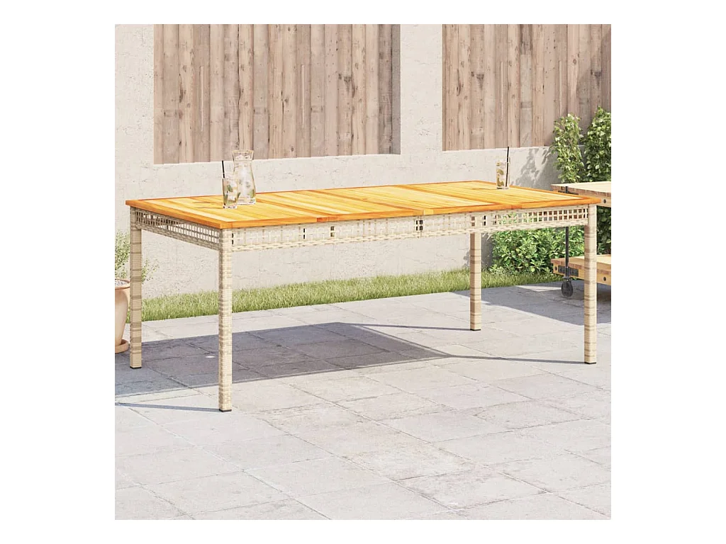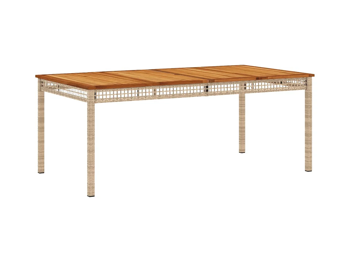 Mesa de jardim 180x90x75 cm vime PE e madeira de acácia bege