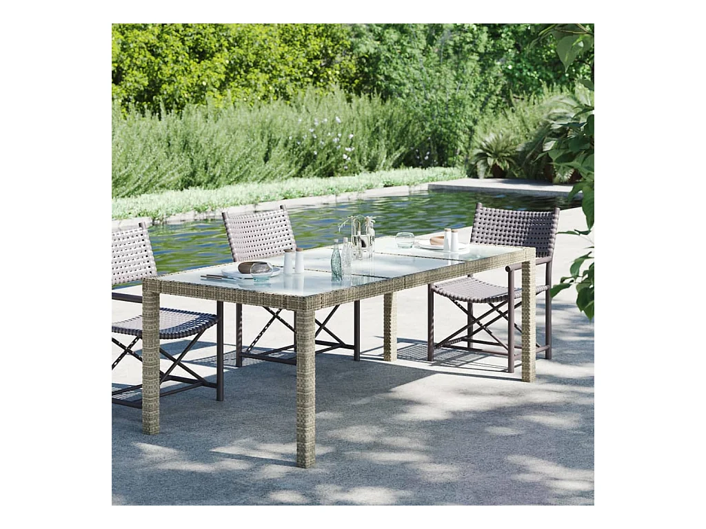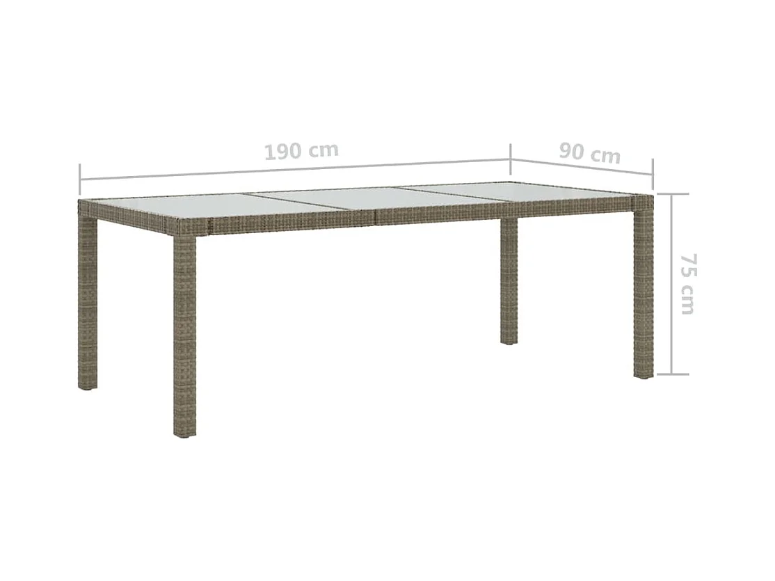 Mesa de jardim 190x90x75 cm vidro temperado e vime PE cinzento