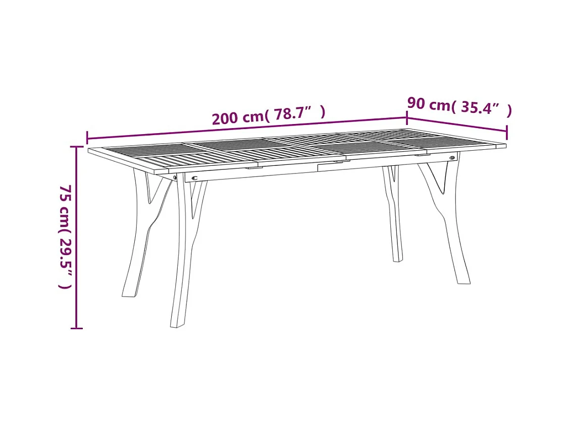 Mesa de jardim 200x90x75 cm madeira de acácia maciça