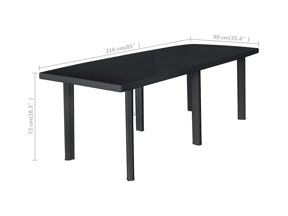 Mesa de jardim 220x90x72cm plástico antracite c/ aspeto de vime