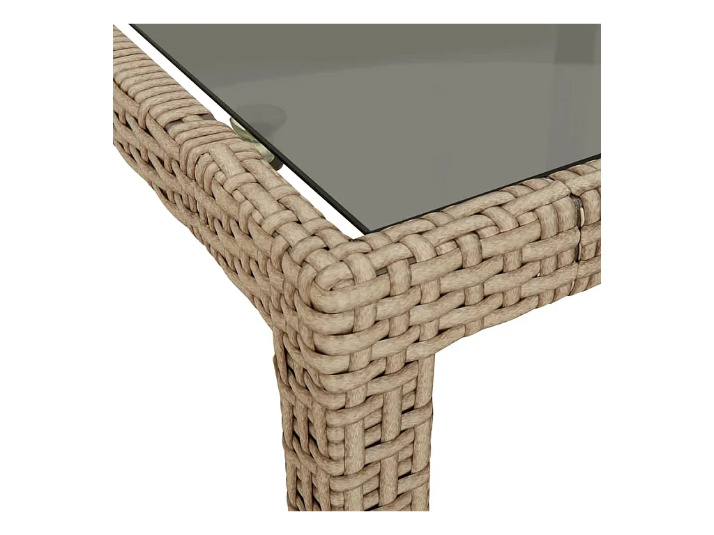 Mesa de jardim c/ tampo de vidro vime PE/vidro temperado bege