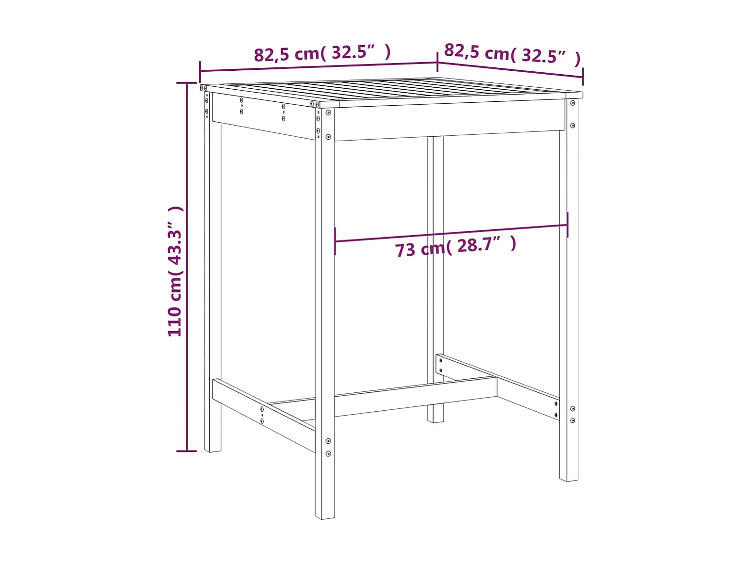 Mesa de jardim 82,5x82,5x110 cm madeira de pinho maciça