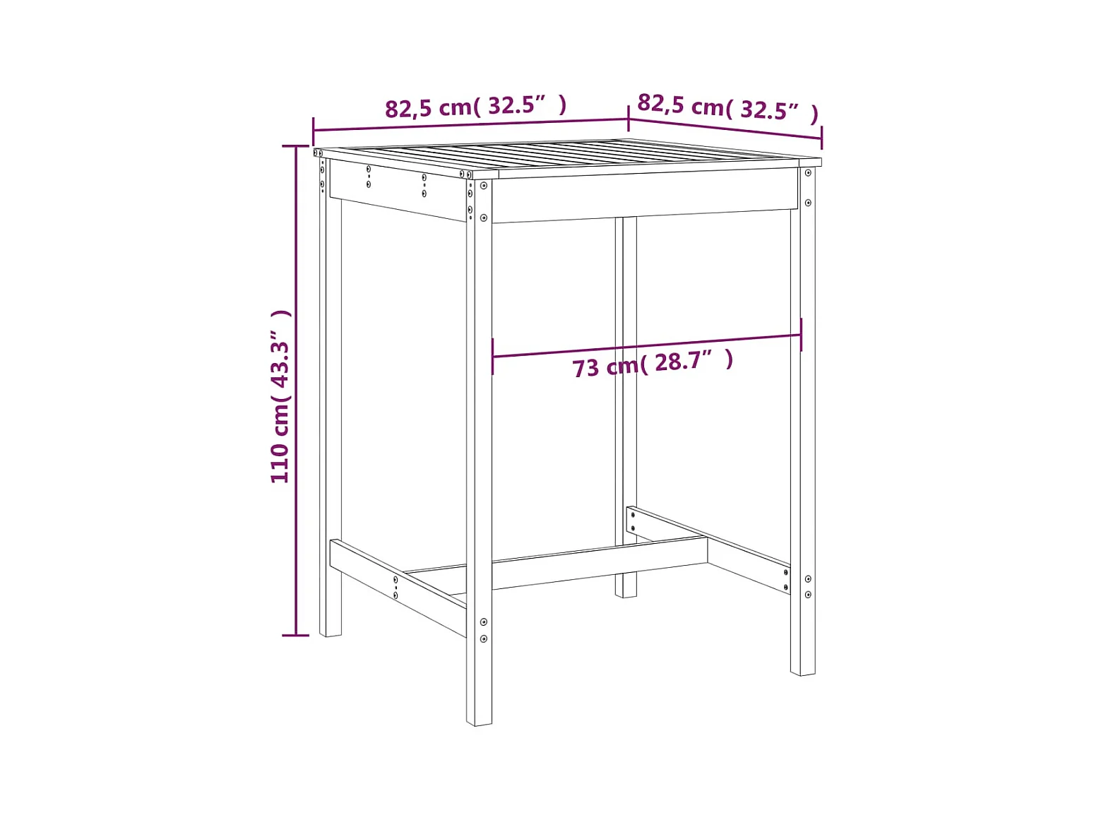Mesa de jardim 82,5x82,5x110 cm madeira de pinho maciça preto