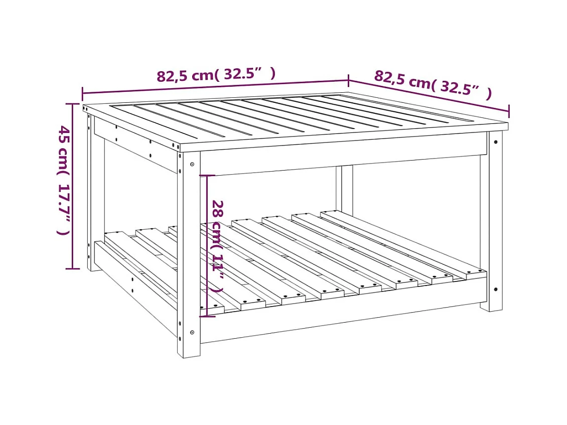 Mesa de jardim 82,5x82,5x45 cm madeira de pinho maciça