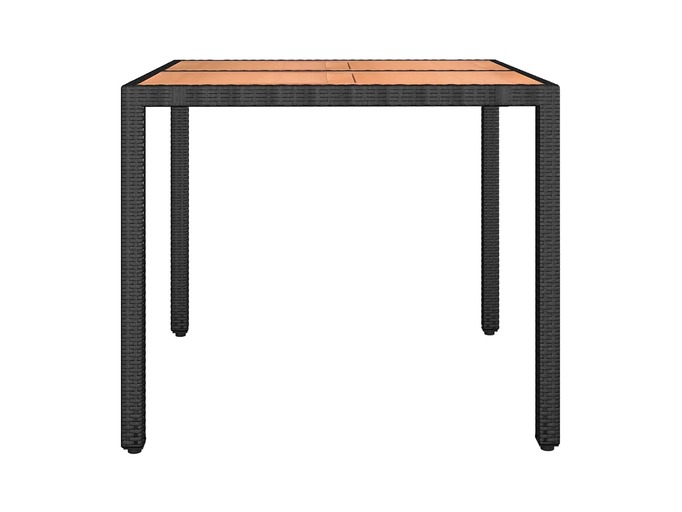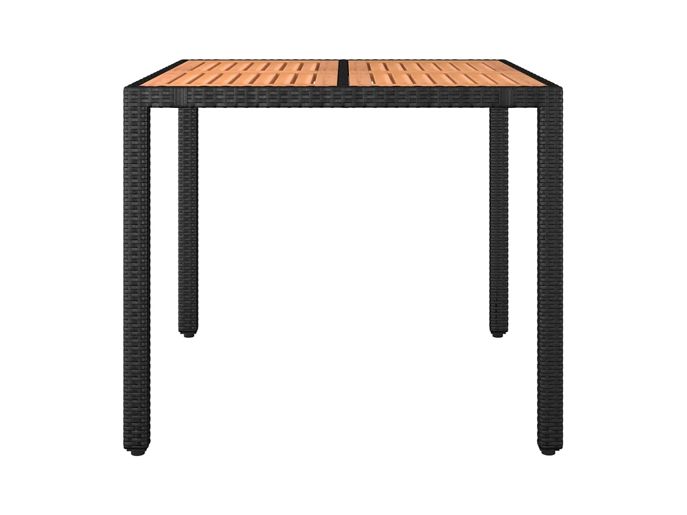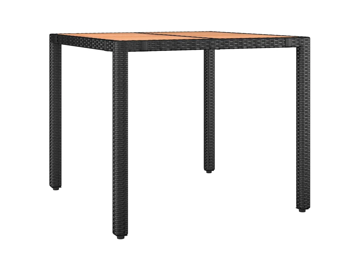 Mesa de jardim com tampo de madeira de acácia vime PE preto