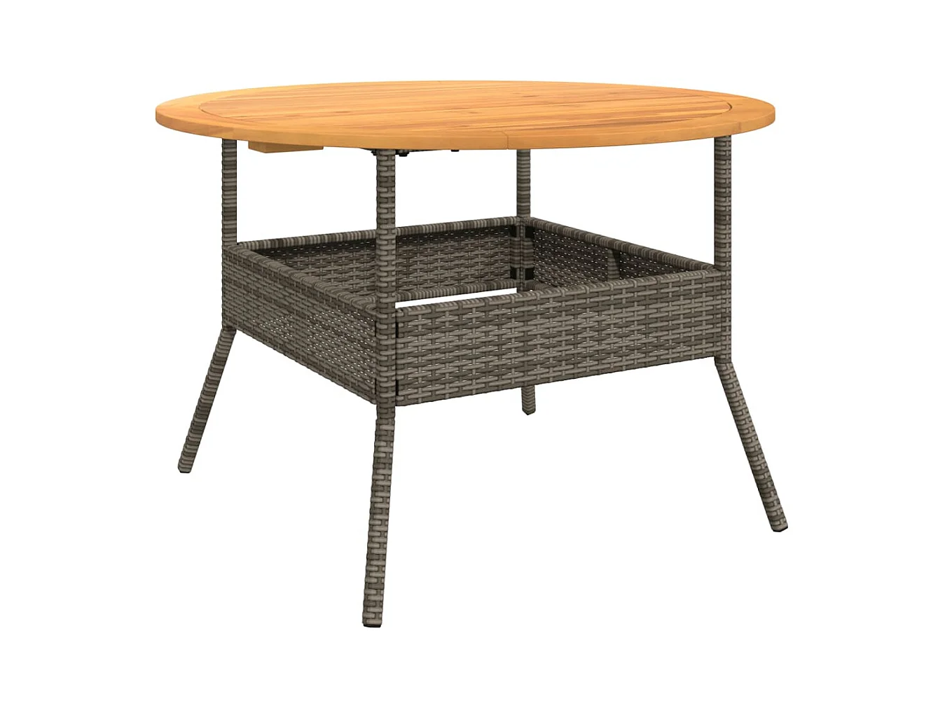 Mesa de jardim com tampo de acácia Ø110x71 cm vime PE cinza