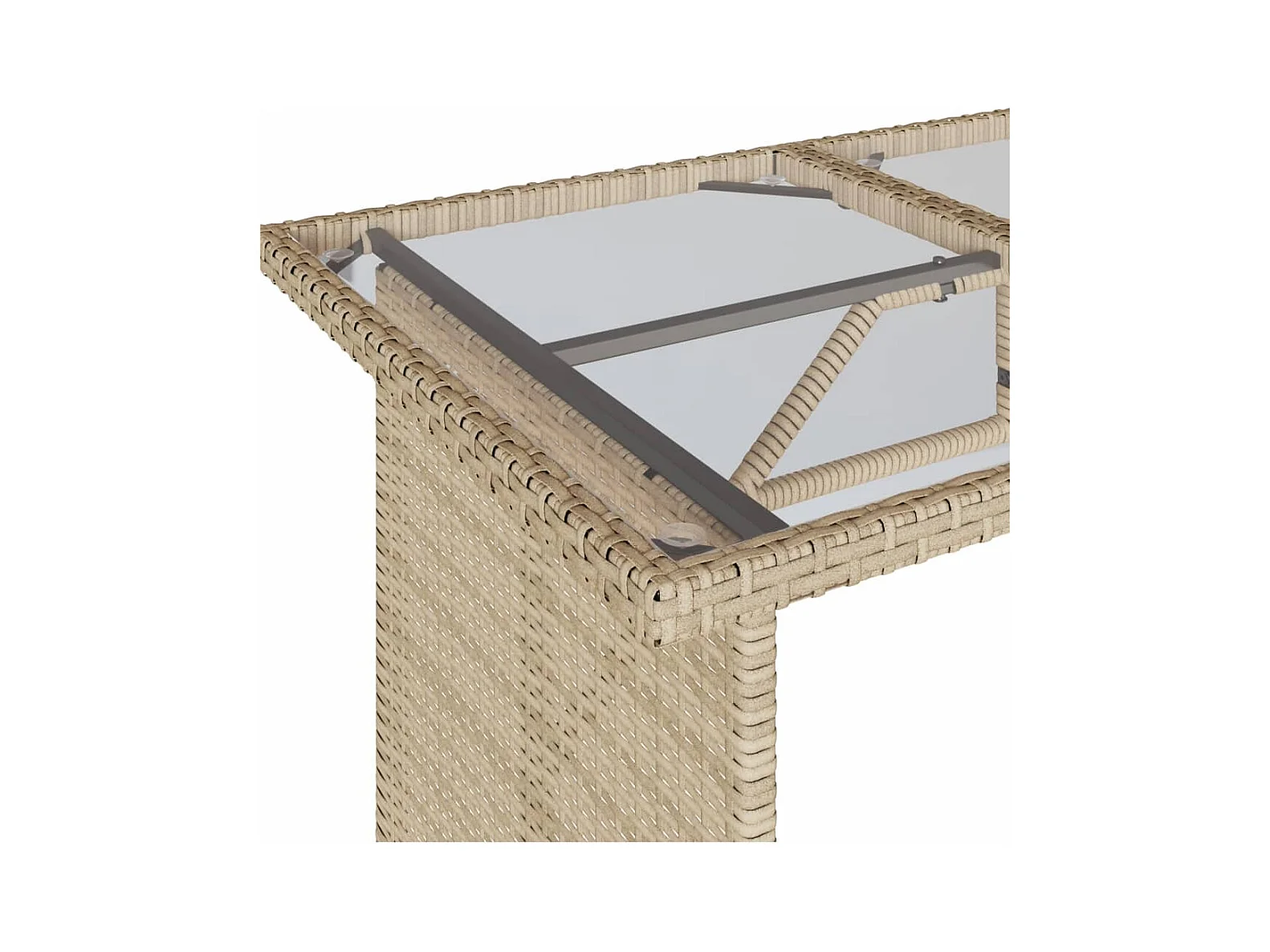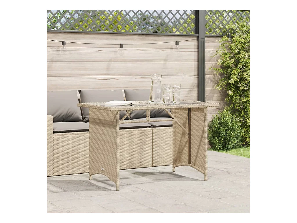 Mesa de jardim c/ tampo de vidro vime PE/vidro temperado bege