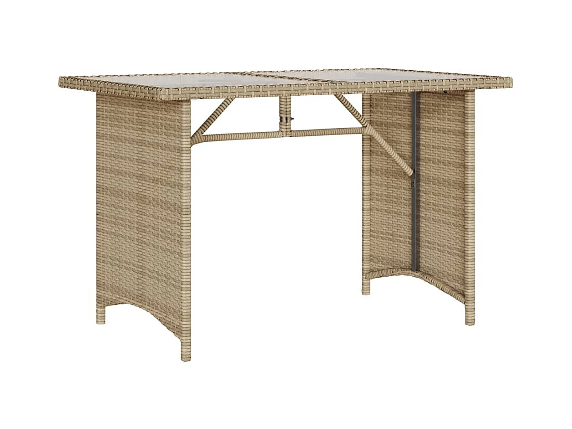 Mesa de jardim 110x53x72 cm vidro e vime PE bege