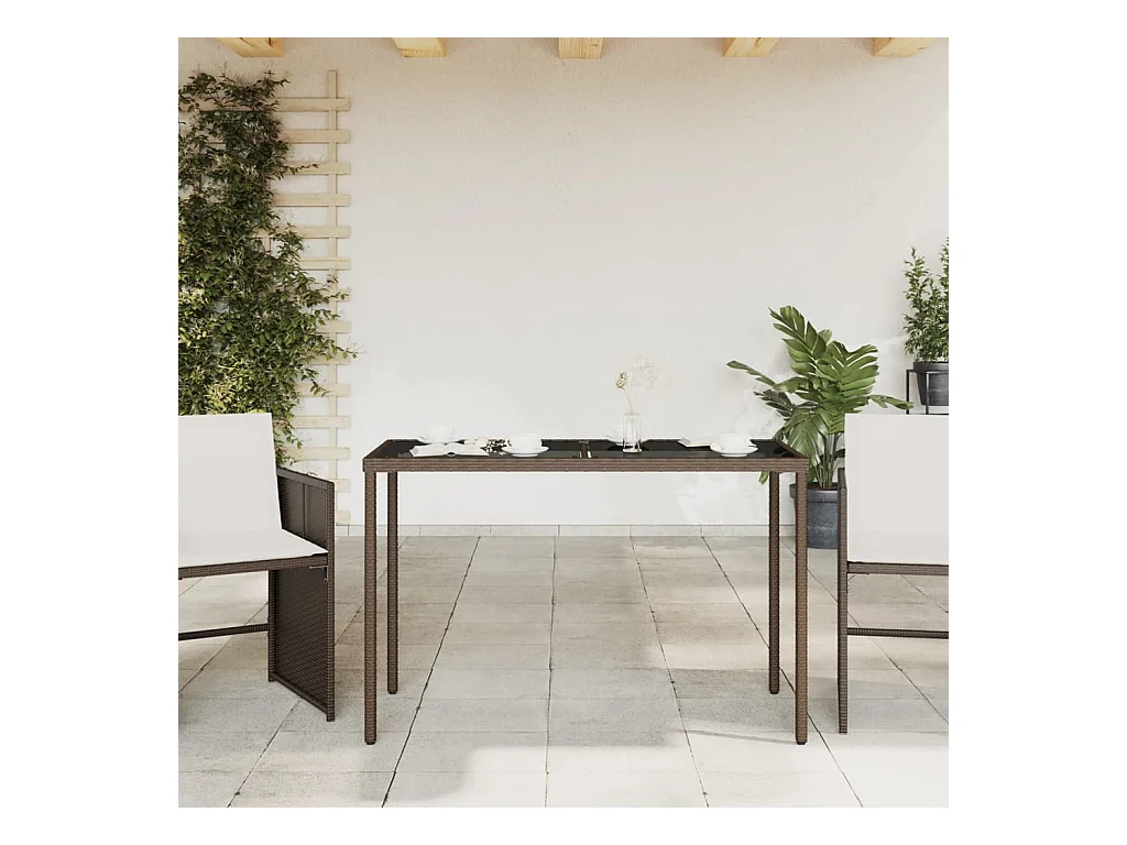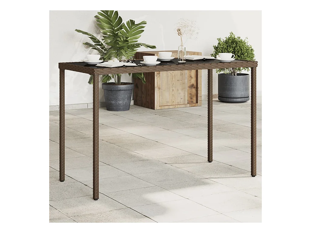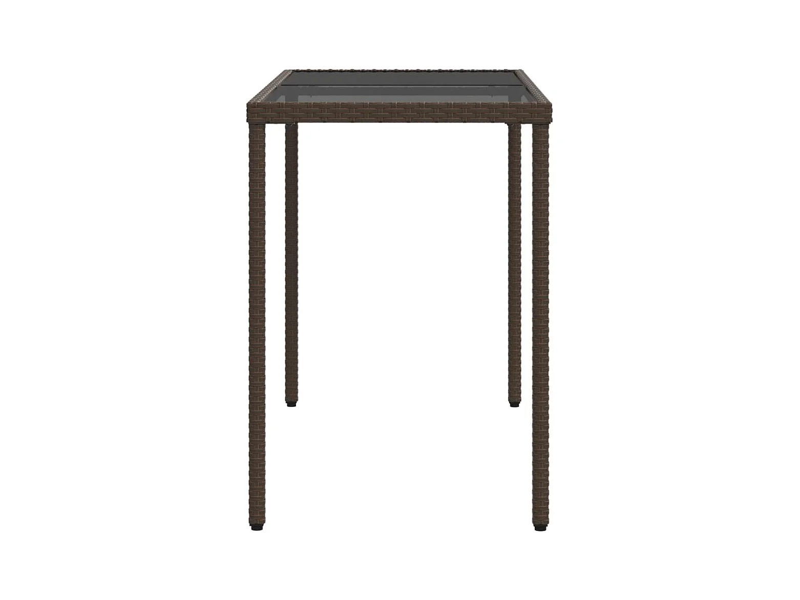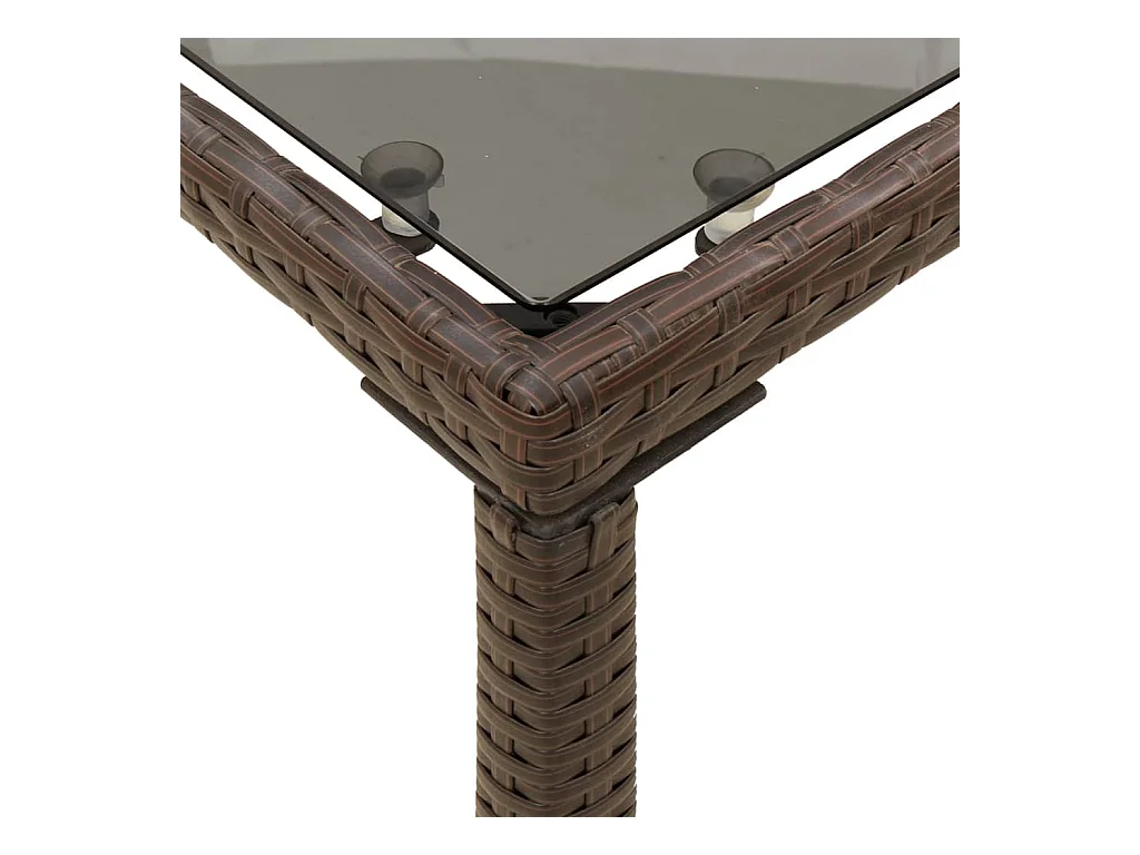 Mesa de jardim 109x107x74 cm vime PE e vidro castanho