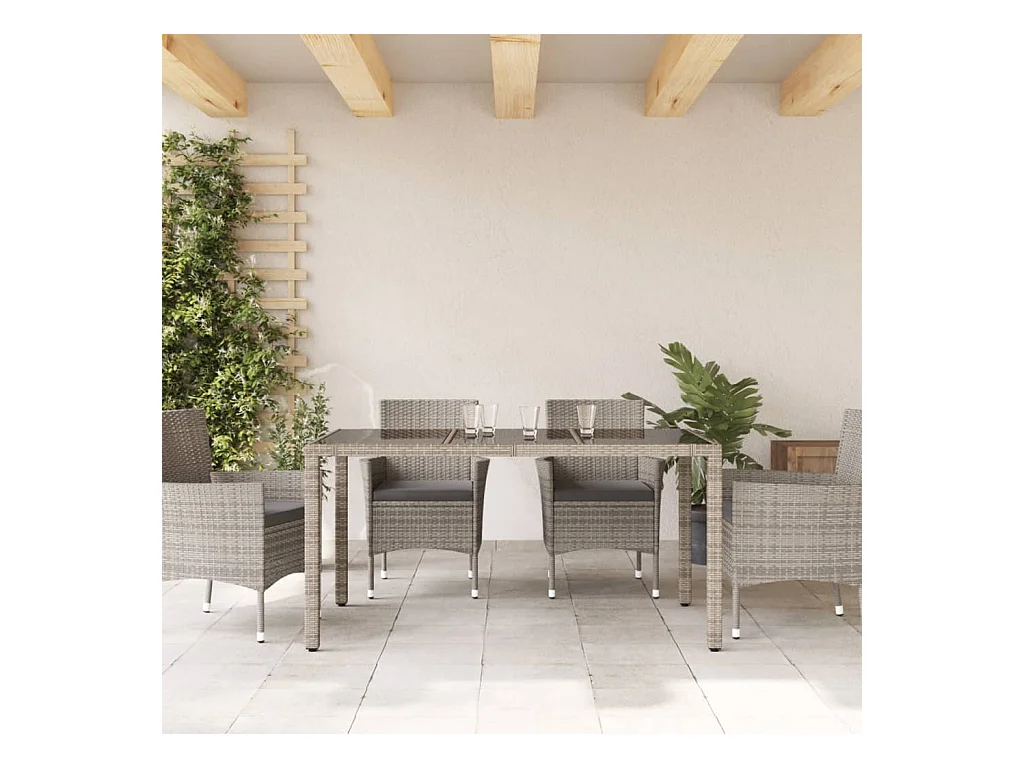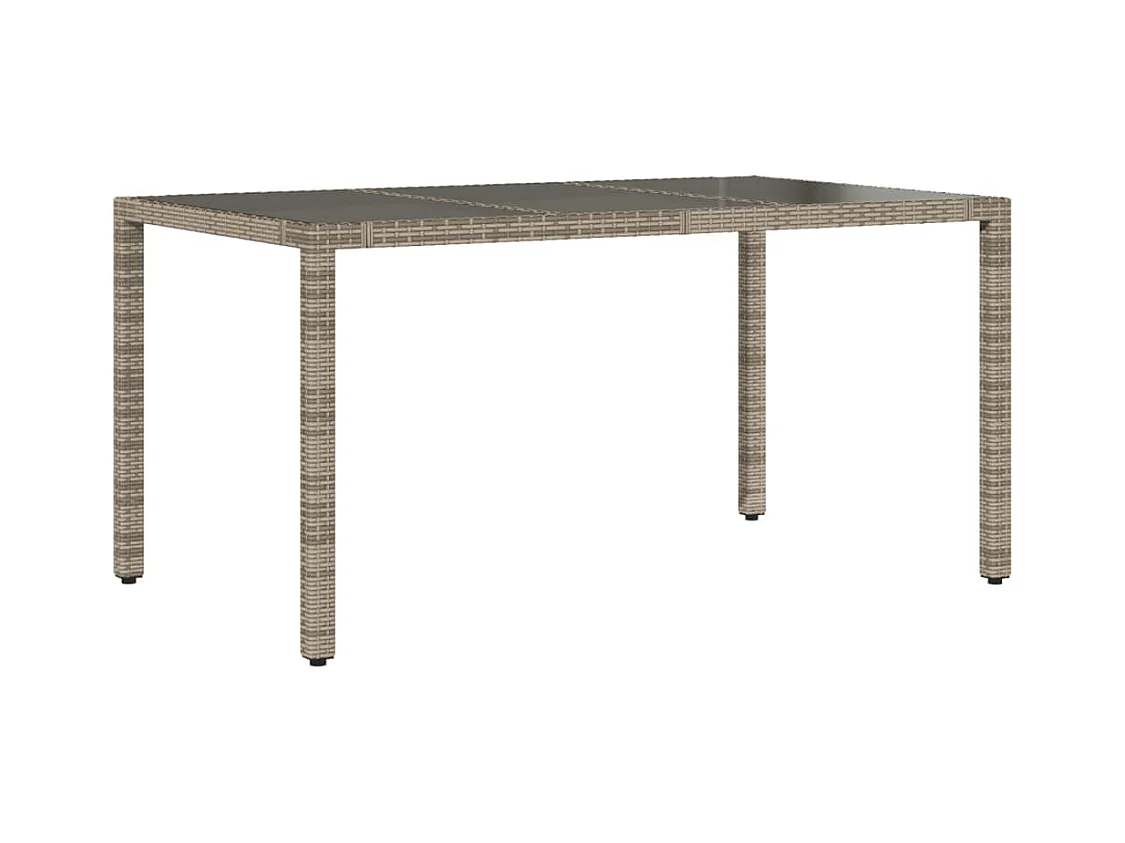 Mesa de jardim 150x90x75 cm vidro temperado e vime PE cinzento