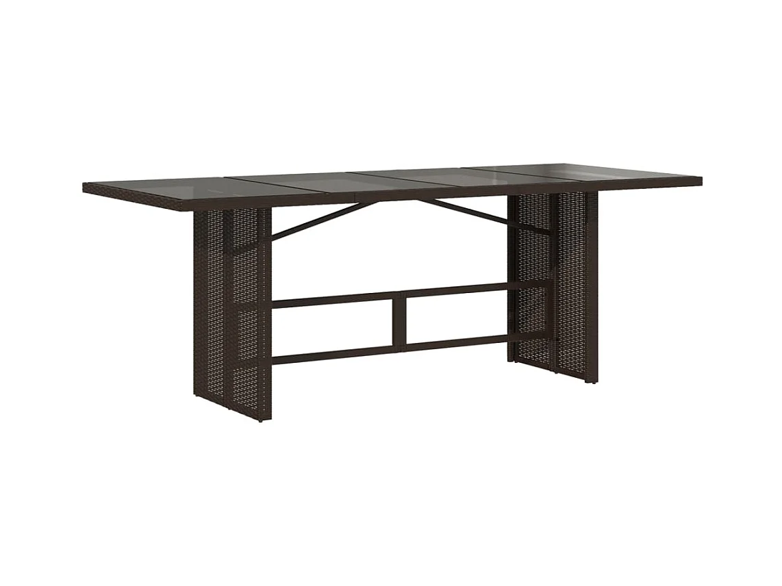 Mesa de jardim com tampo de vidro 190x80x75 cm vime PE castanho