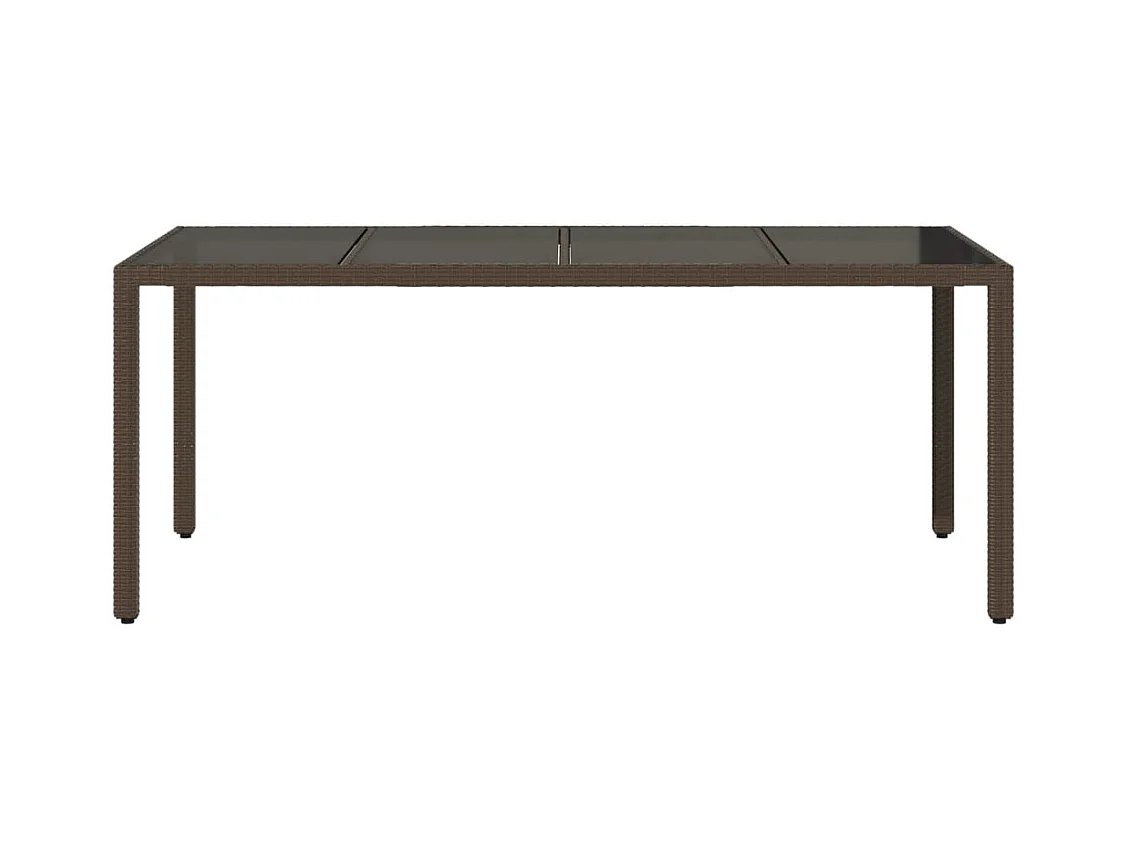 Mesa de jardim 190x90x75 cm vidro temperado e vime PE castanho