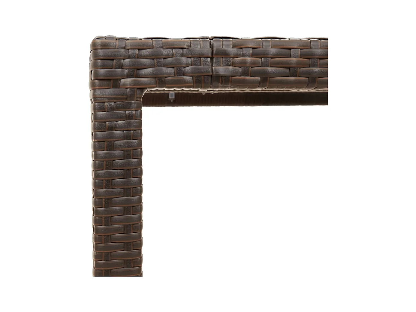 Mesa de jardim com tampo de vidro 90x90x75 cm vime PE castanho