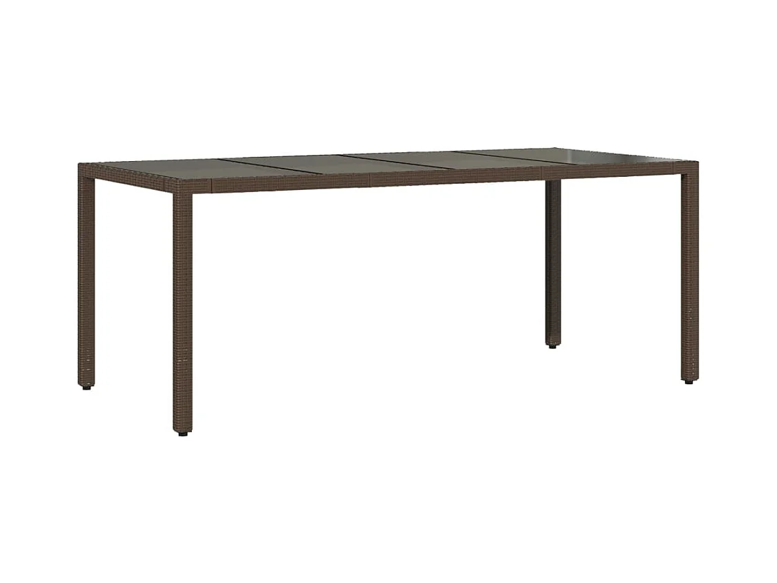Mesa de jardim 190x90x75 cm vidro temperado e vime PE castanho