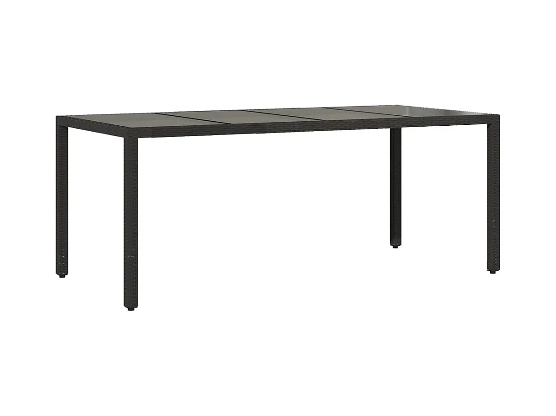 Mesa de jardim com tampo de vidro 190x90x75 cm vime PE preto