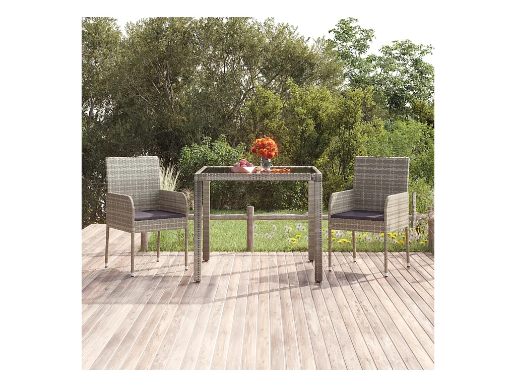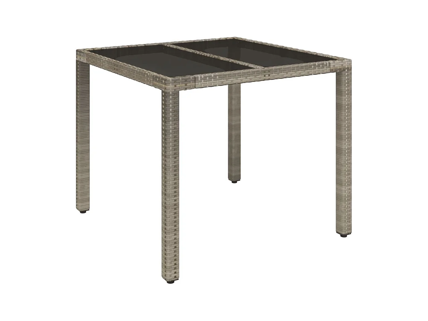 Mesa de jardim 90x90x75 cm vidro temperado e vime PE cinzento