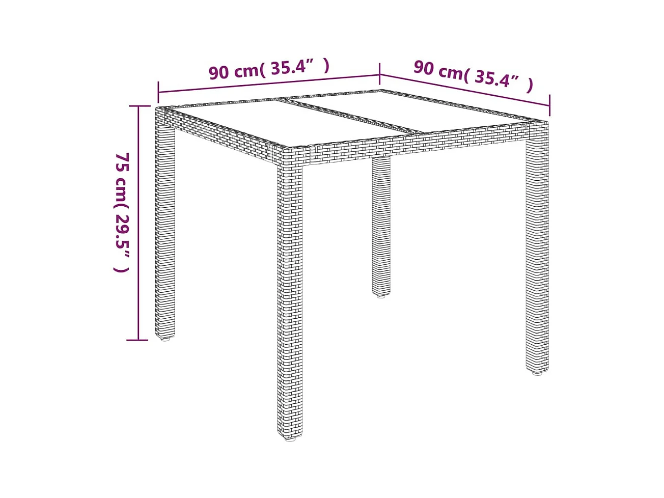 Mesa de jardim c/ tampo de vidro 90x90x75cm vime PE cinza-claro