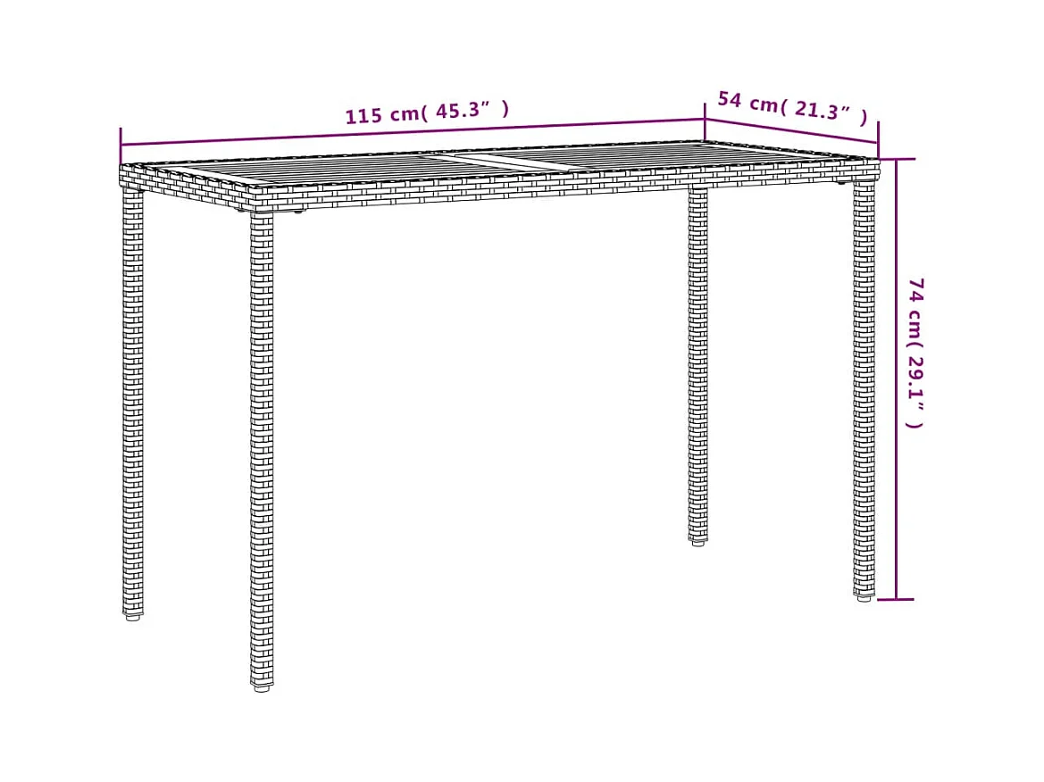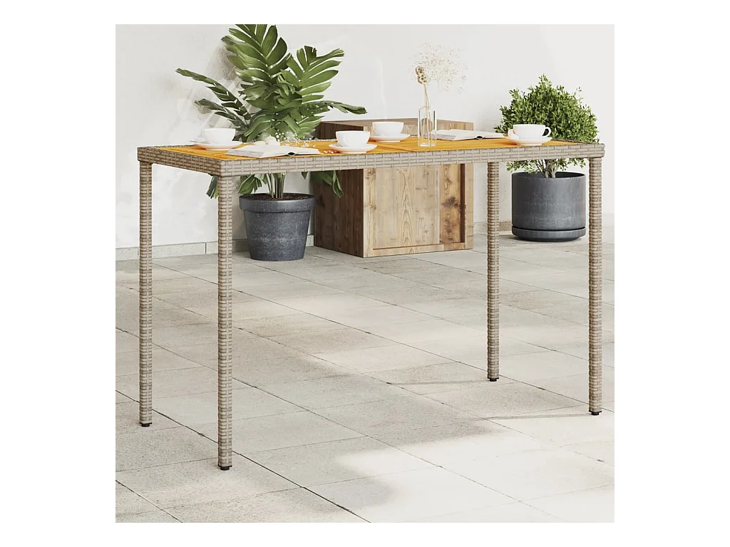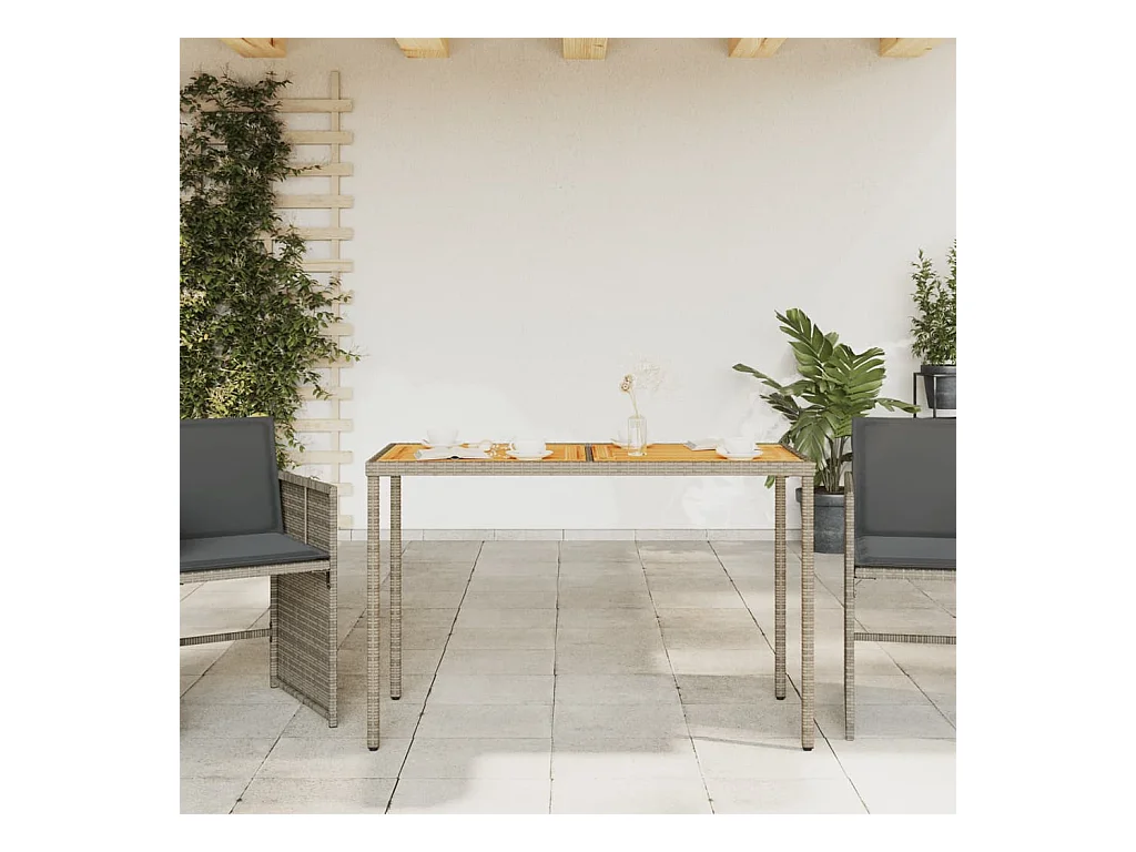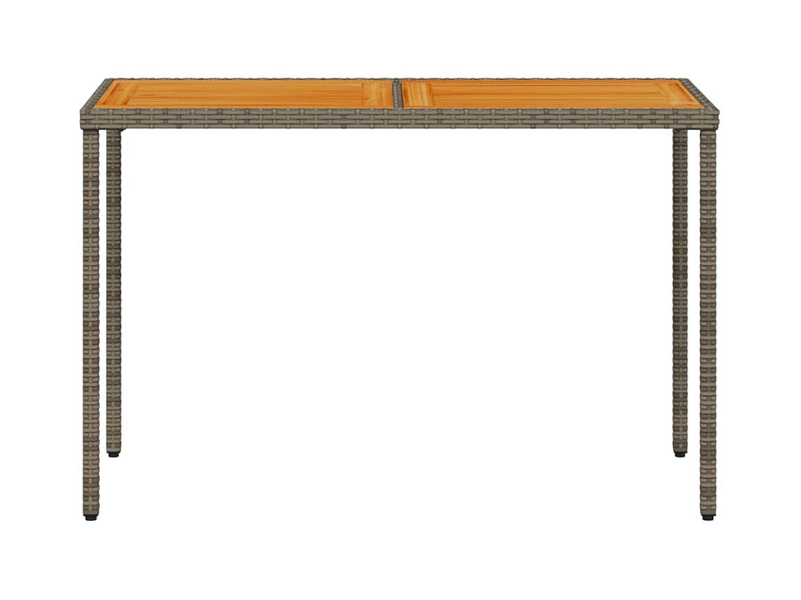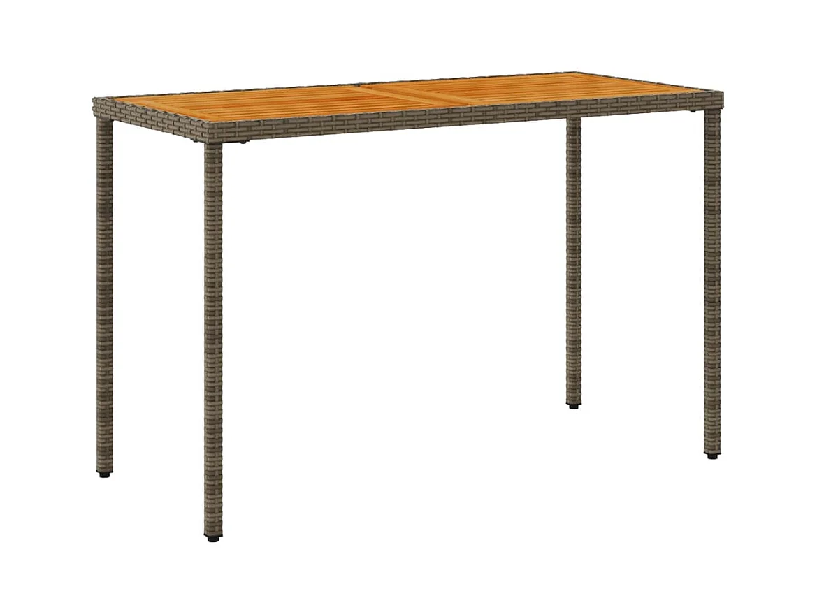 Mesa de jardim com tampo em acácia 115x54x74 cm vime PE cinza