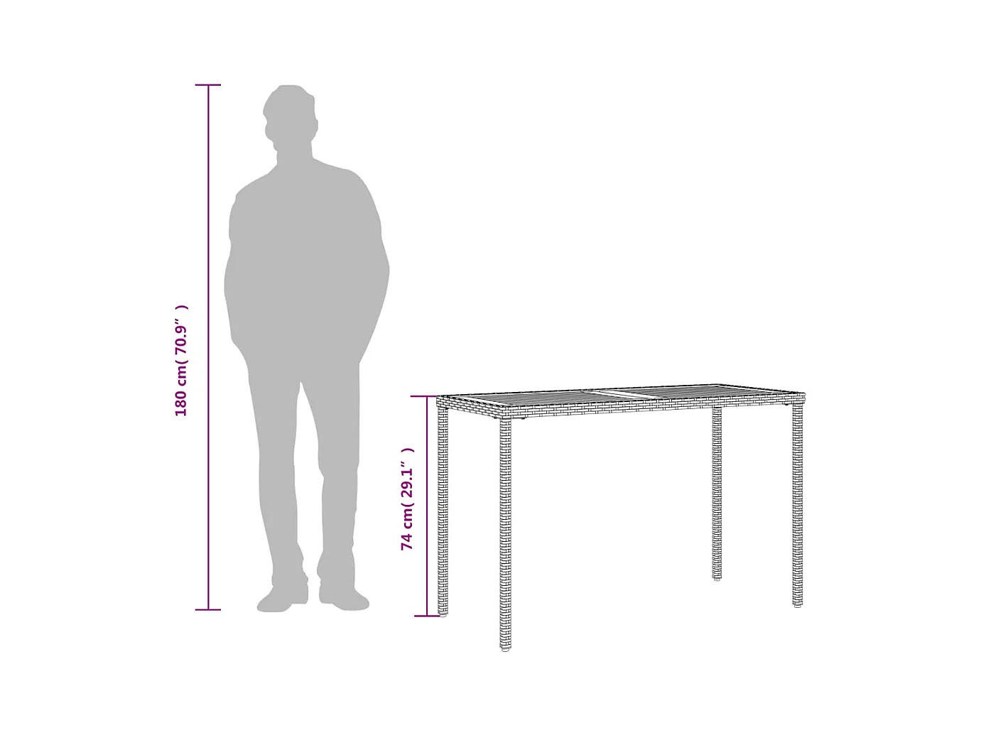 Mesa de jantar p/ exterior 200x150x74 cm vime PE cinzento