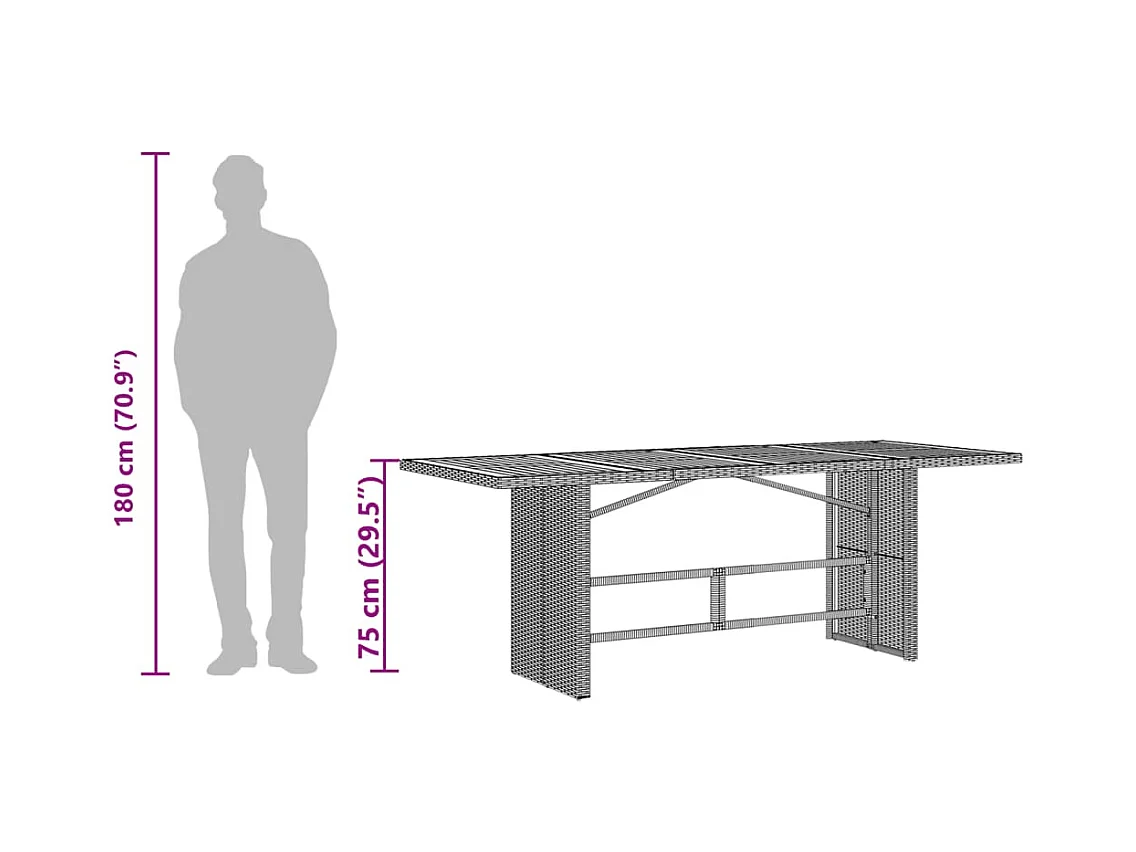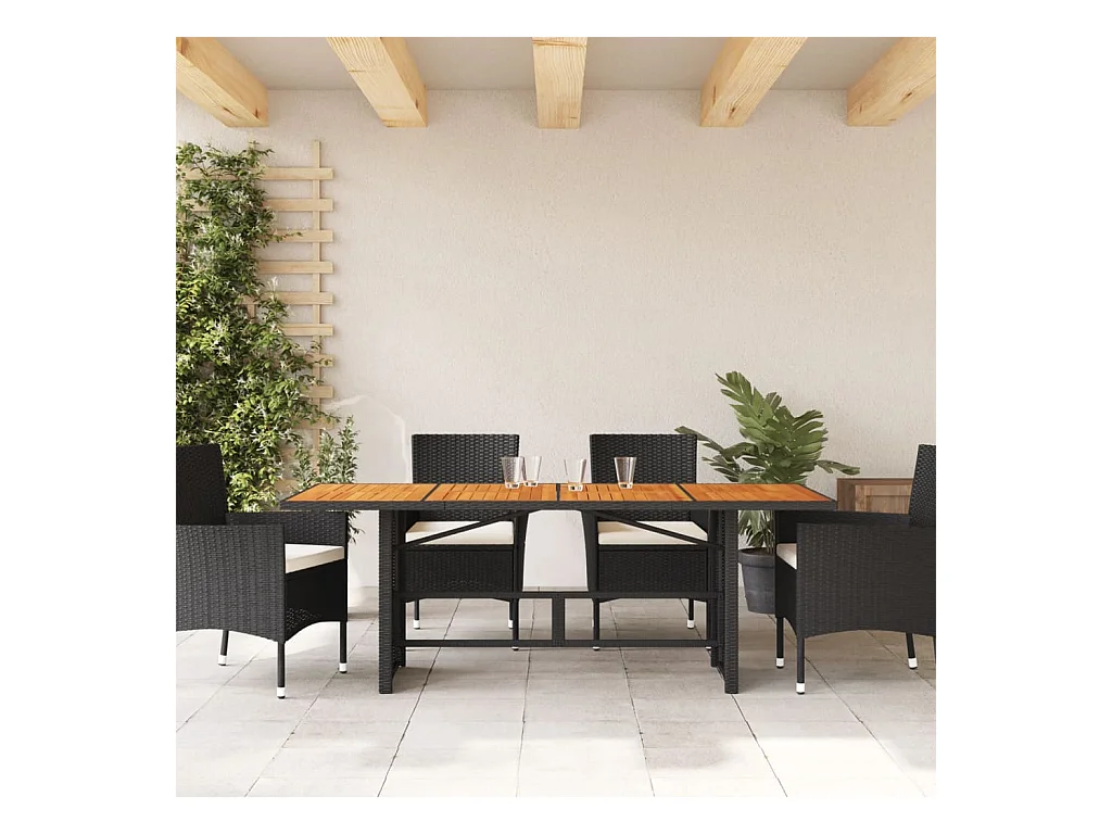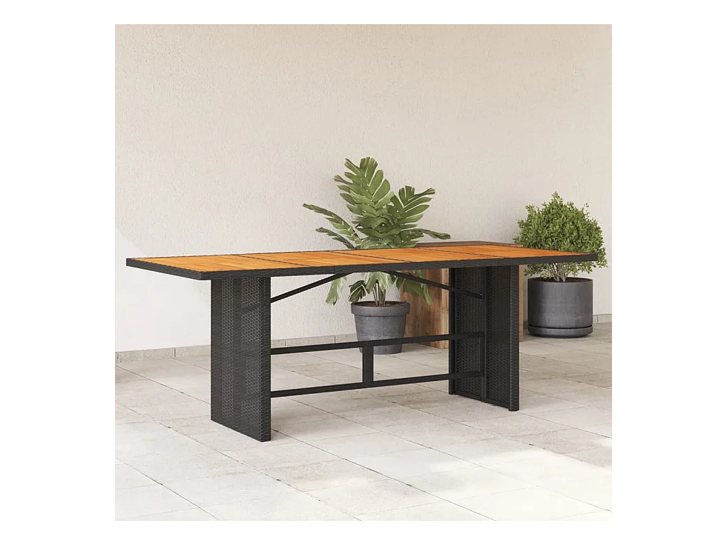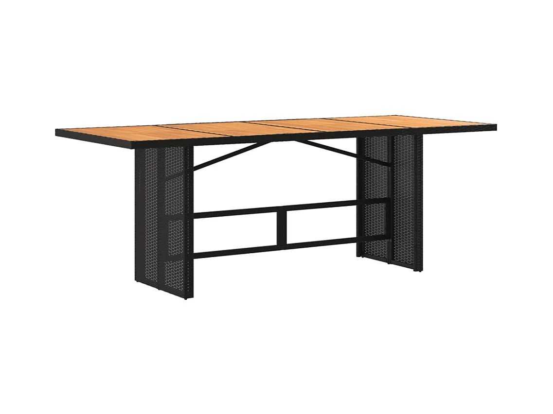 Mesa de jardim com tampo em acácia 190x80x75 cm vime PE preto
