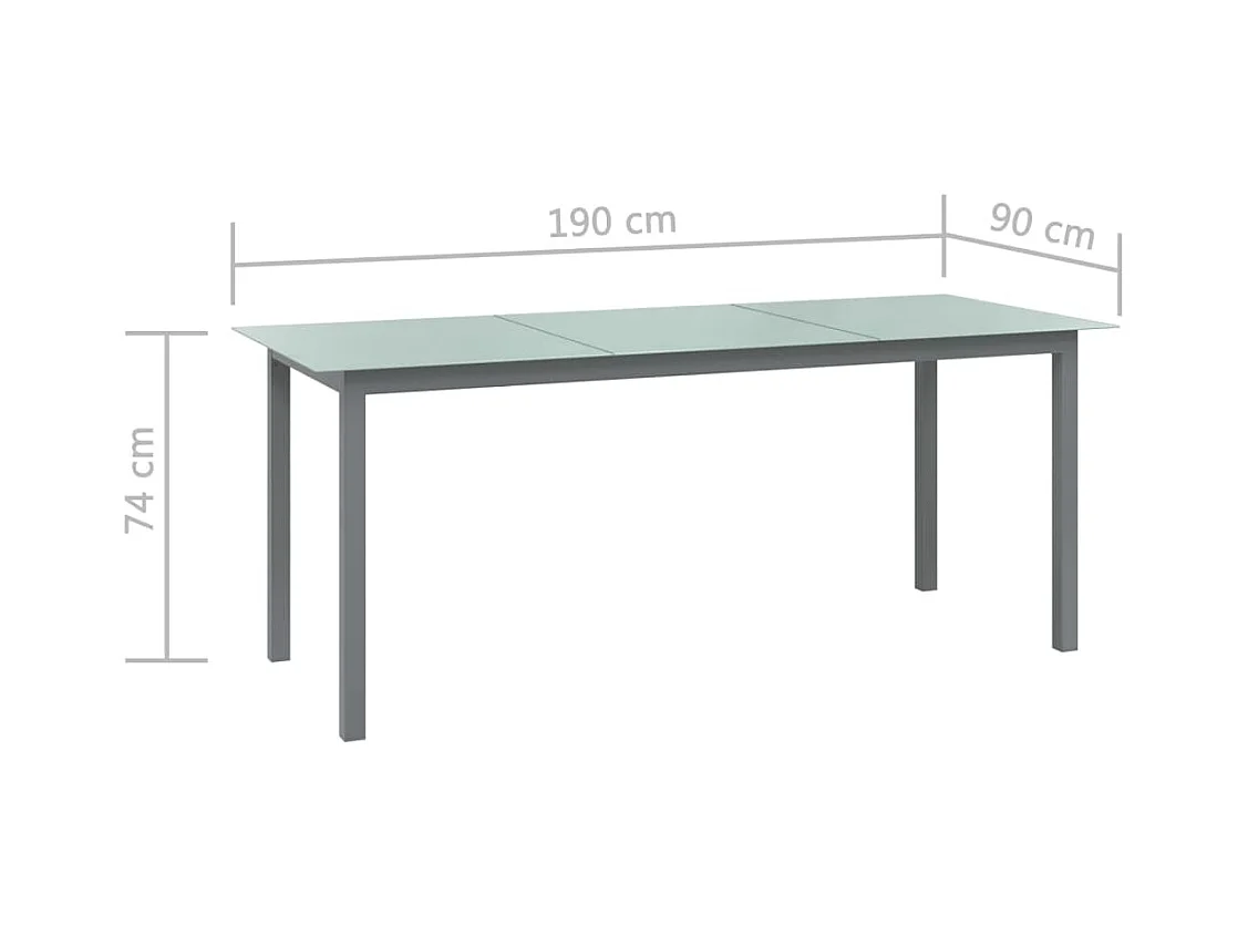 Mesa de jardim em alumínio e vidro 190x90x74 cm cinzento-claro