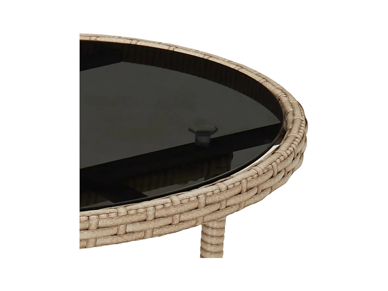 Mesa de chá 60 cm vime PE e vidro temperado bege