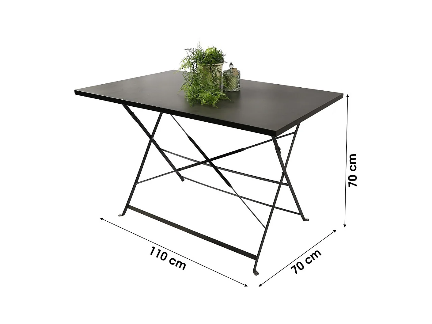 Mesa de jardim retangular dobrável – 110x70x70 cm – Metal cinza – Prática e resistente