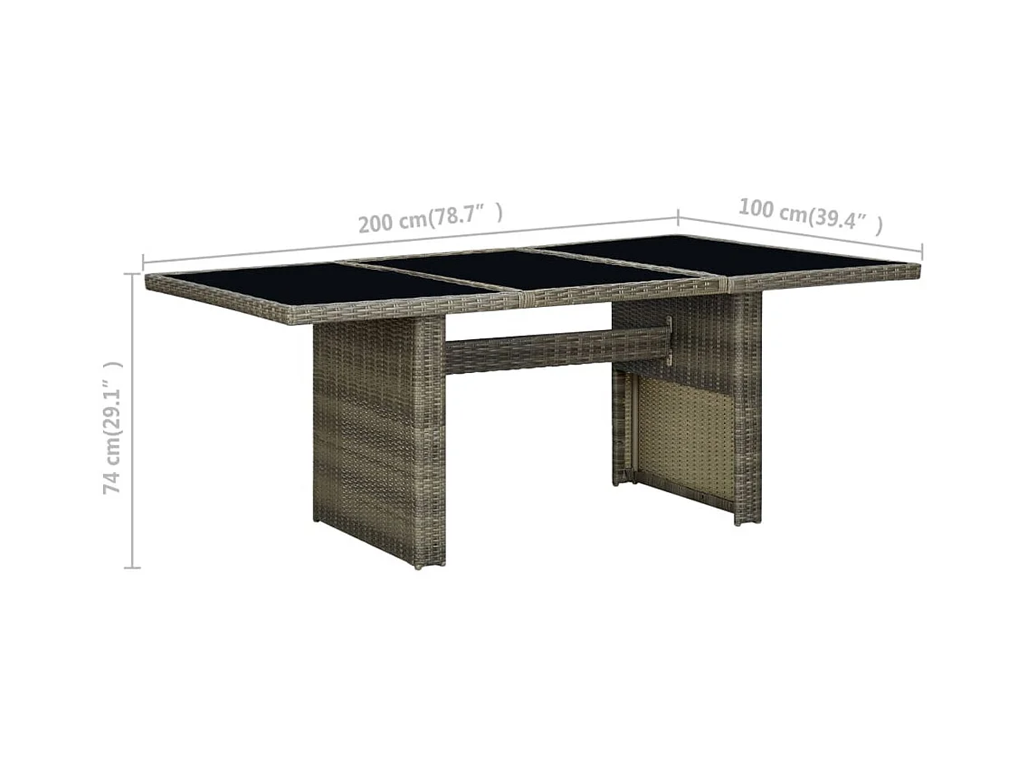 Mesa de jantar jardim 200x100x74 cm vidro e vime PE castanho