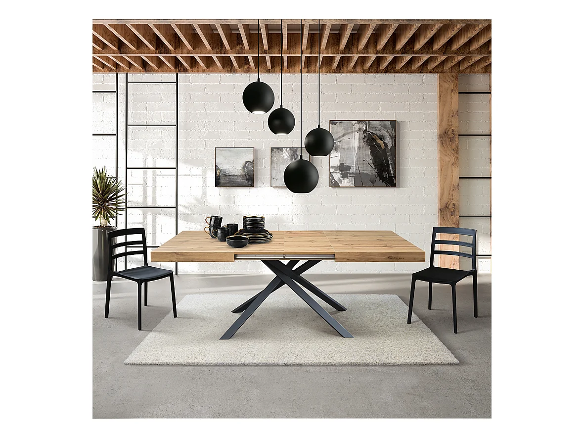 Mesa de madeira com efeito de carvalho, pernas antracite, ext. 160x90-240x90cm - AMALFI
