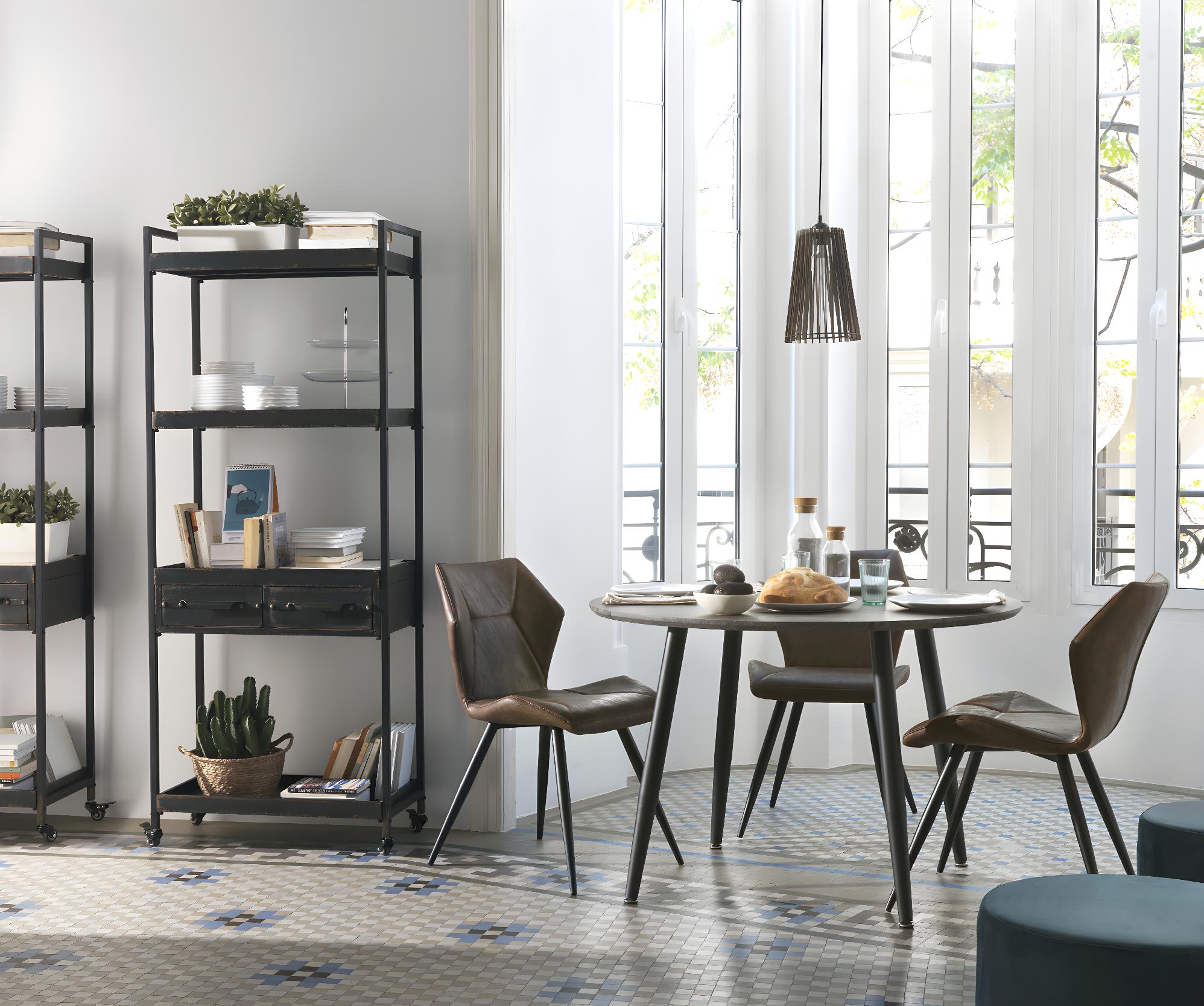 Mesa de melamina efeito pedra com pés metálicos 110 cm de diâmetro