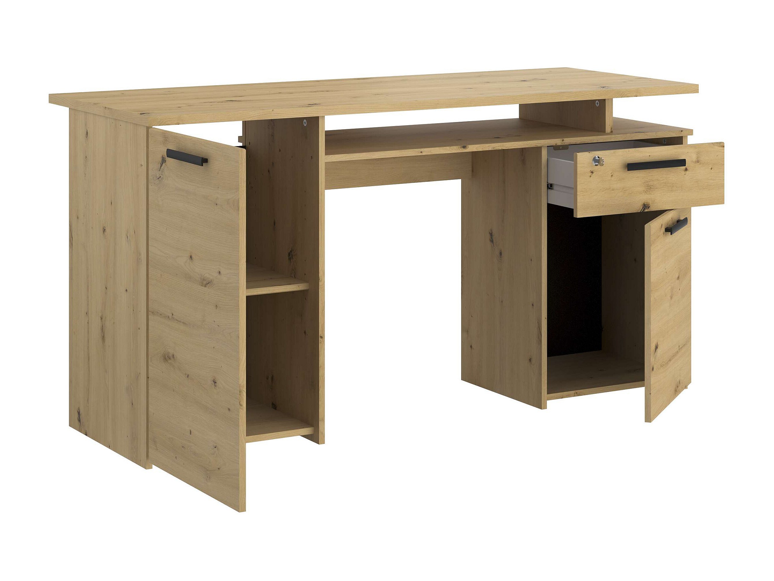 MESA DE COMPUTADOR INDUSTRIAL GAVETA PRATELEIRAS CARVALHO CLARO ESCANDINAVO