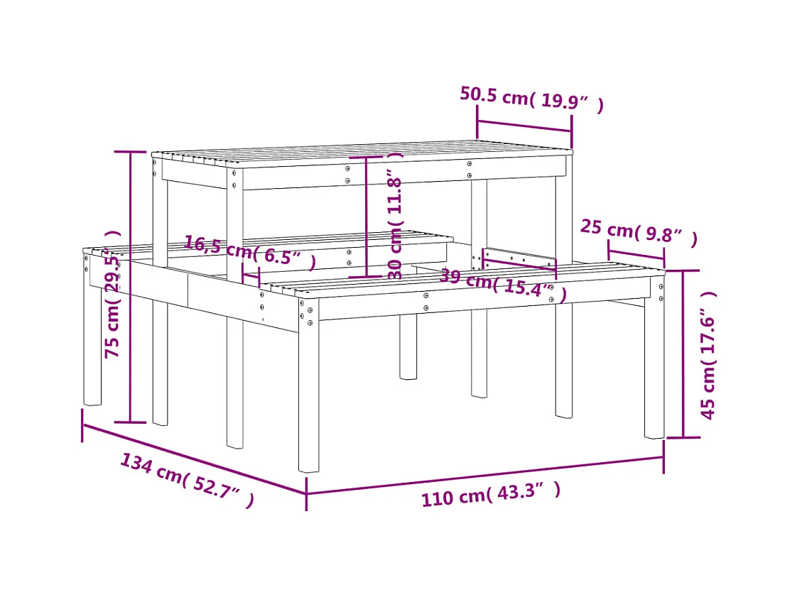 Mesa de piquenique 110x134x75 cm madeira de pinho maciça