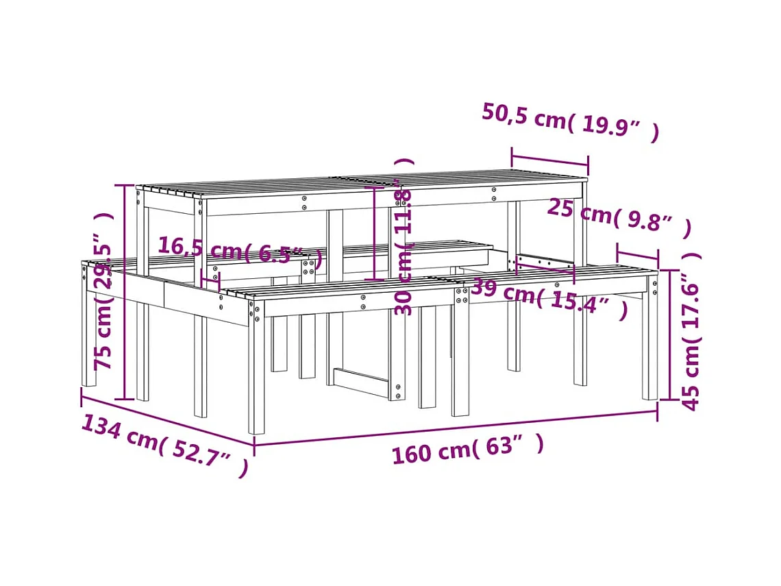 Mesa de piquenique 160x134x75 cm madeira de pinho maciça
