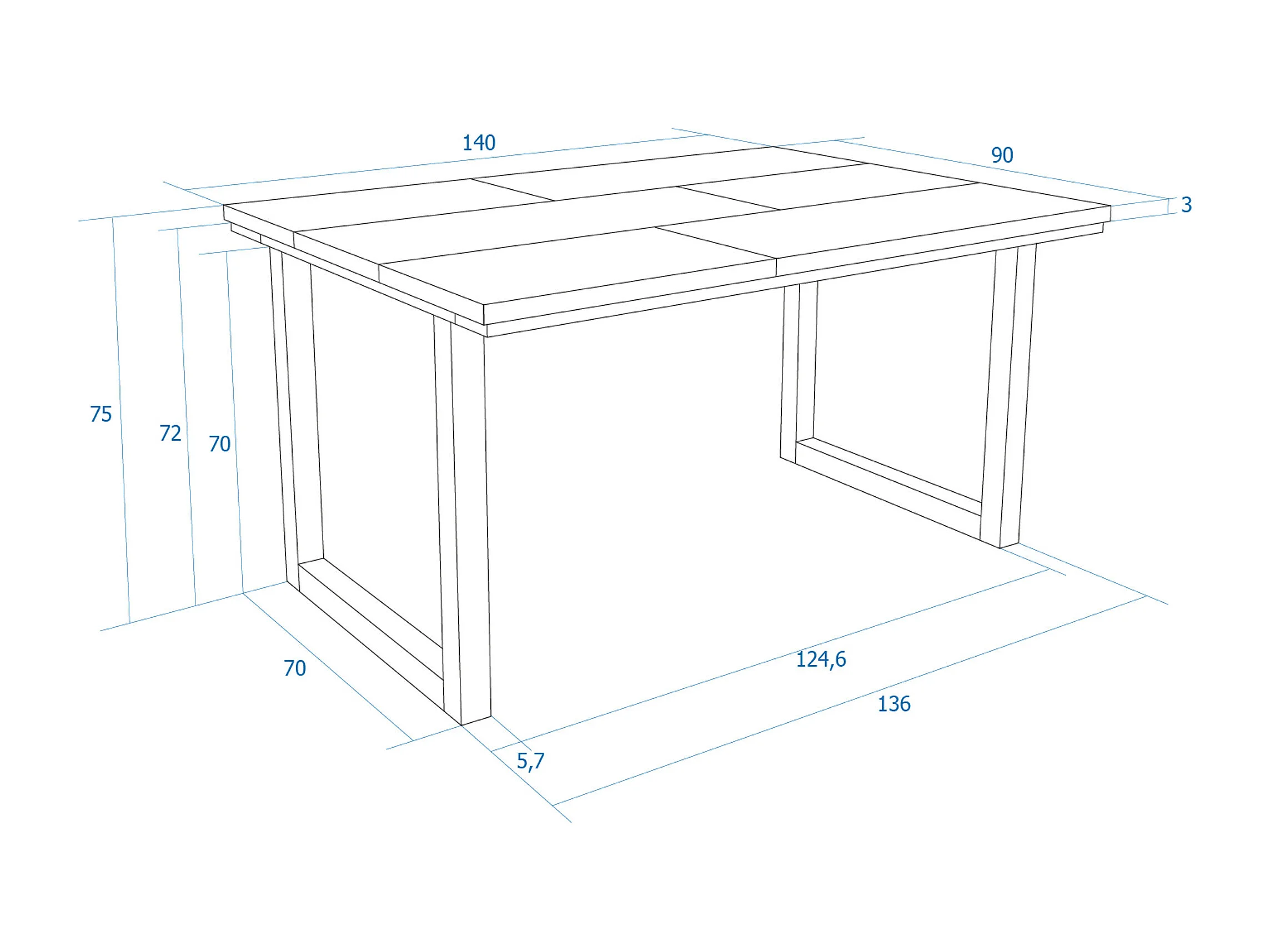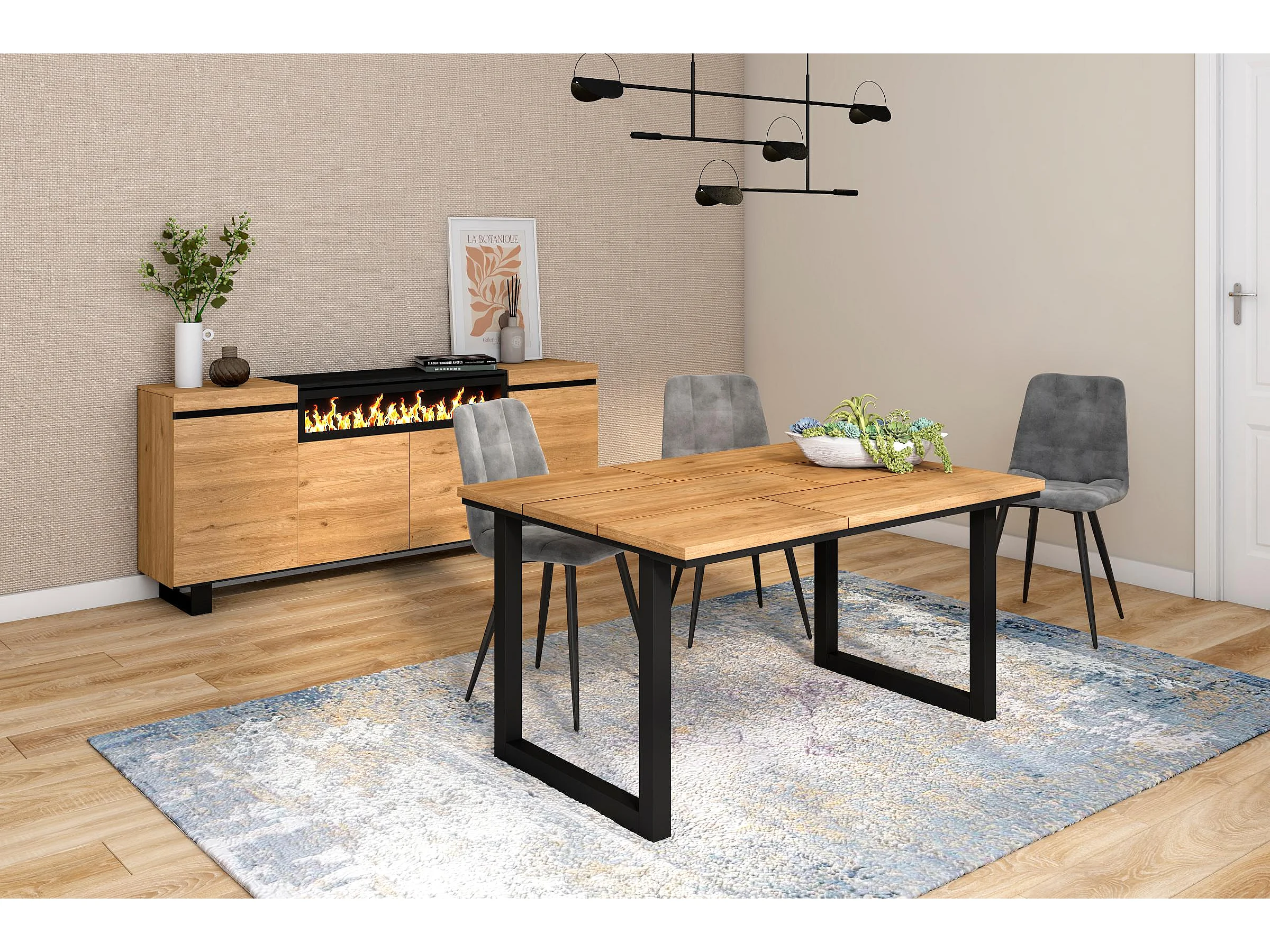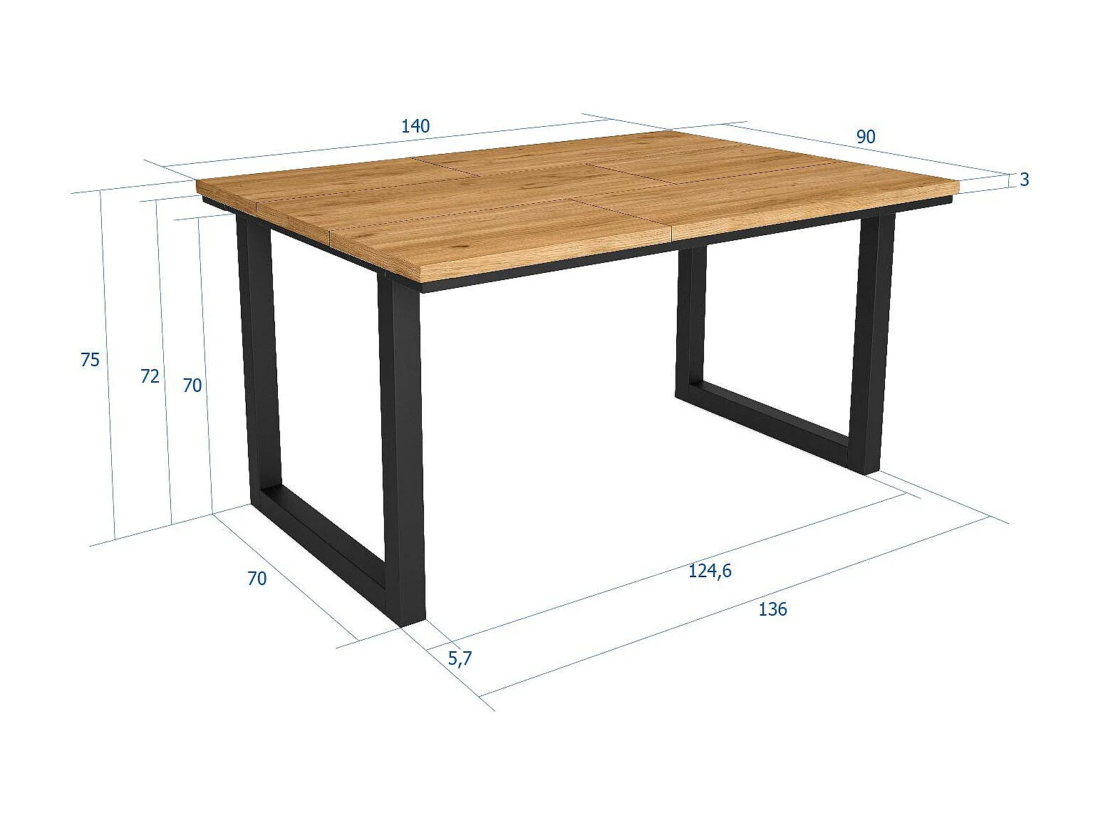 Mesa de sala de jantar, 6 pessoas, 140x90x75cm, Robusto e estável graças à sua estrutura e pernas sólidas, Carvalho, Estilo industrial
