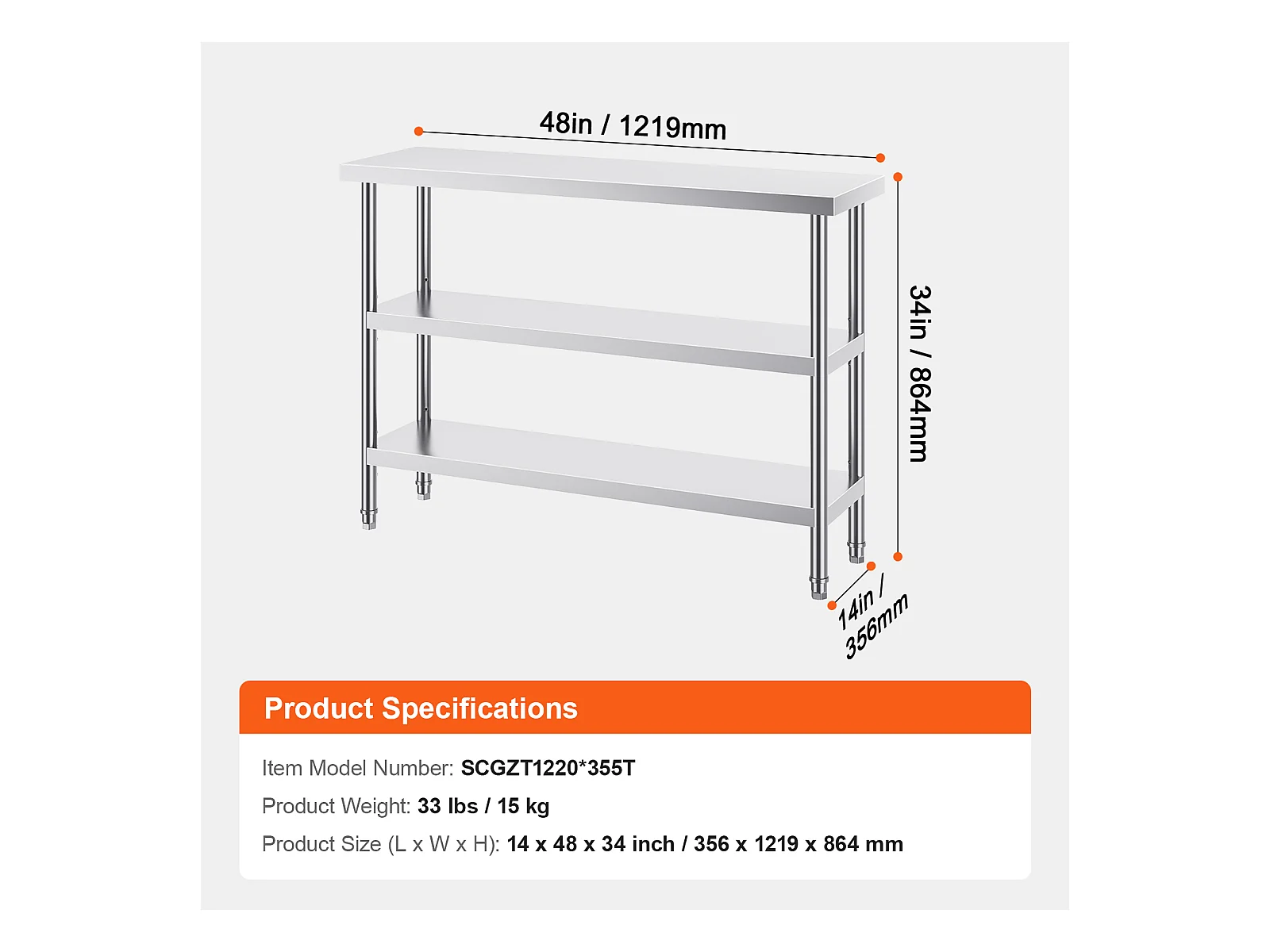 Mesa de Trabalho Cozinha SucceBuy 35,6x121,9 cm, Mesa de Trabalho de Cozinha Comercial em Aço Inoxidável