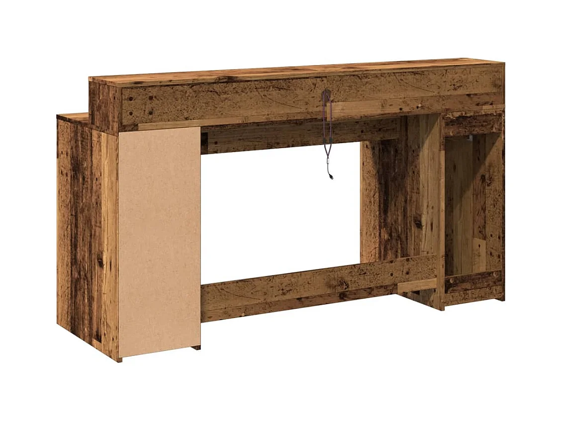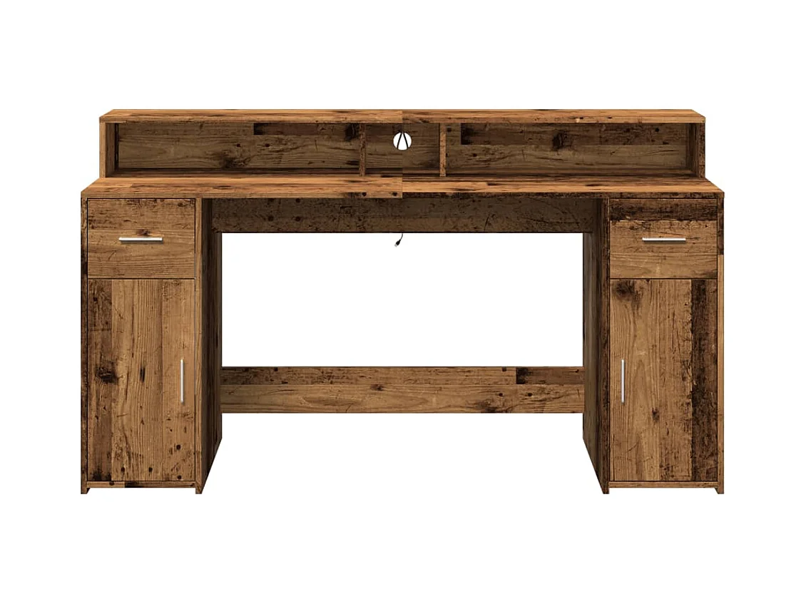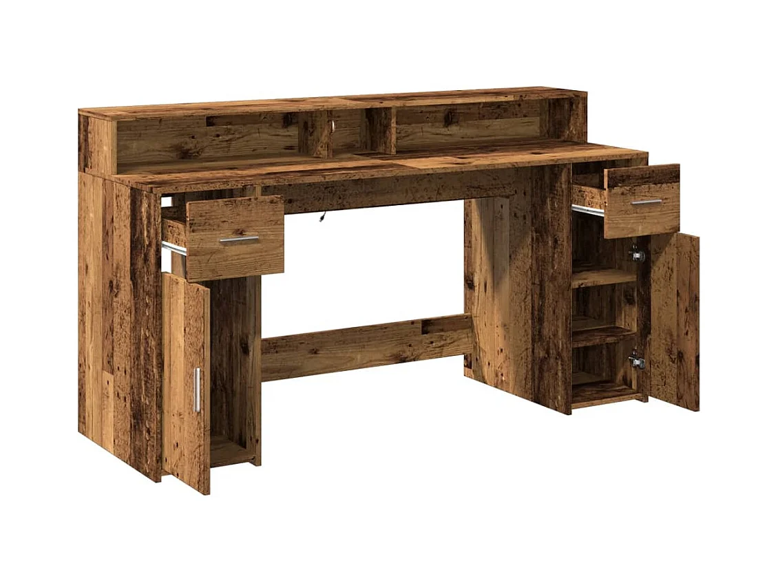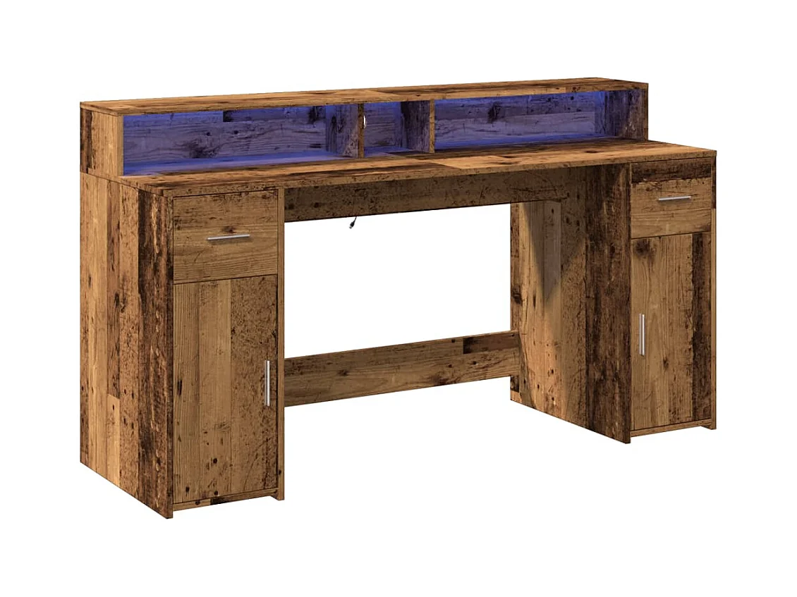 Mesa de trabalho estação de trabalho móveis de computador estudo de computador com luzes LED madeira antiga madeira projetada marrom 02_0023441