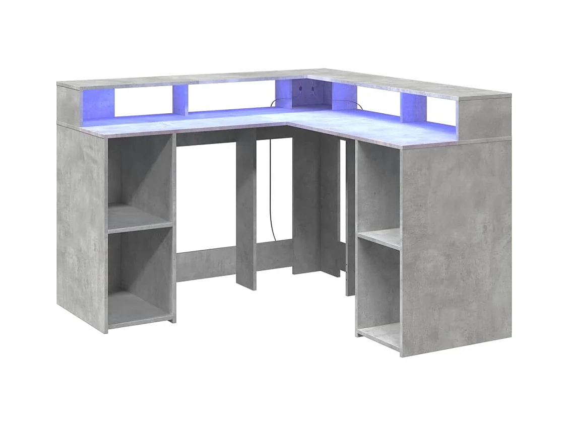 Mesa de trabalho estação de trabalho móveis de computador estudo e luzes LED sonoma 130 x 130 x 91cm madeira projetada cinza 02_0023806