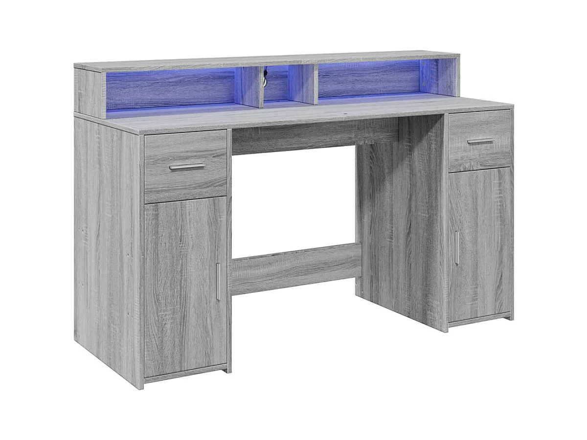 Mesa de trabalho estação de trabalho móveis de computador estudo e luzes LED sonoma 140 x 55 x 91 cm madeira engenharia cinza 02_0023807